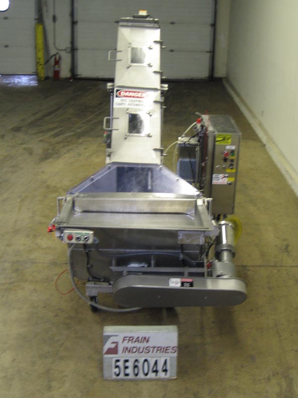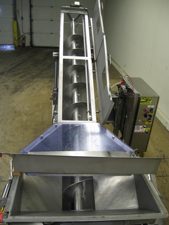 返回所有设备12"直径x 9英尺长全不锈钢螺旋输送机。配备一个30 " L x 40 " W x 30 " D产品料斗与穿孔的空气操作翻盖,12"螺钉在3-1/2"直径轴,封闭的输送腔与两个翻盖打开螺栓下盖和10" L x 6" W现场玻璃端口,和一个CIP。Graco Huskey 715隔膜泵,2”外径卫生在进料/出料口,带喷嘴的进料棒,运行的螺杆长度。可调螺距,最大放电66英寸。