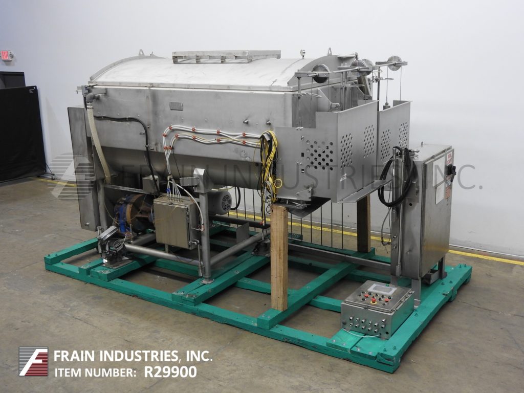 返回所有设备MEPACO,型号170,304不锈钢双槽碎片搅拌器。每批500至6000磅的产品 - 取决于材料应用和机器配置。容量:150英尺(120英尺的工作)。双槽尺寸:102“长度; 64”宽;44“深度每个槽。配备升降顶盖和安全篦,双重叠划桨,双气动栅极排出,具有40”地间隙。由(2)20 HP电机驱动器供电。控制面板具有AB PanelView加700触摸屏HMI和按钮开始/停止。安装在重型框架上。