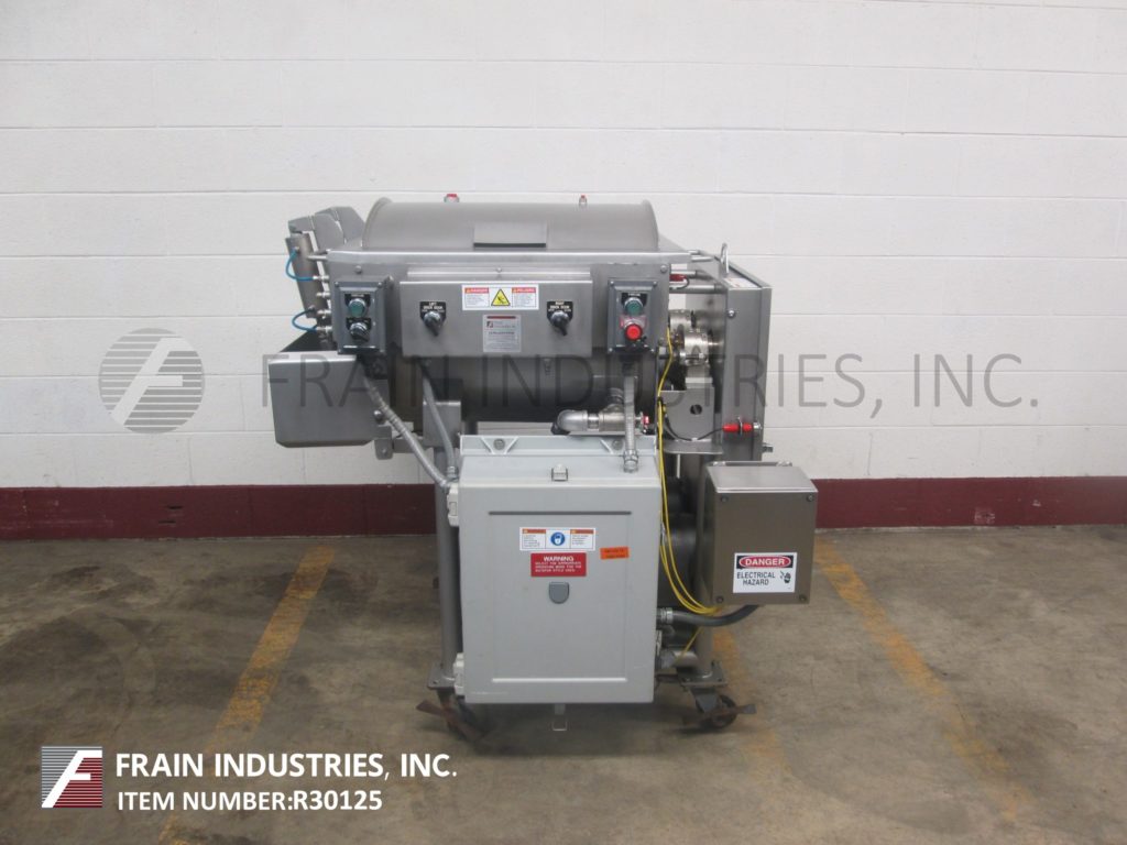 返回所有设备MEPACO,型号170,304不锈钢双槽夹套丝带搅拌器评分为0至150磅产品的每批产品 - 取决于材料应用和机器配置。容量:2½ft³总计(2ft³工作)。双槽尺寸:25“长度; 22”,宽度;15“深度。配备升降顶部覆盖物和升降机,双气动栅极放电,30”接地间隙。由(2)1 HP电机驱动器提供动力,具有机械变速。控制面板已启动/慢跑/停止,用于混合/卸载/反向和打开/关闭/关闭/关闭/关闭排出门。安装在带脚轮的重型基架上。