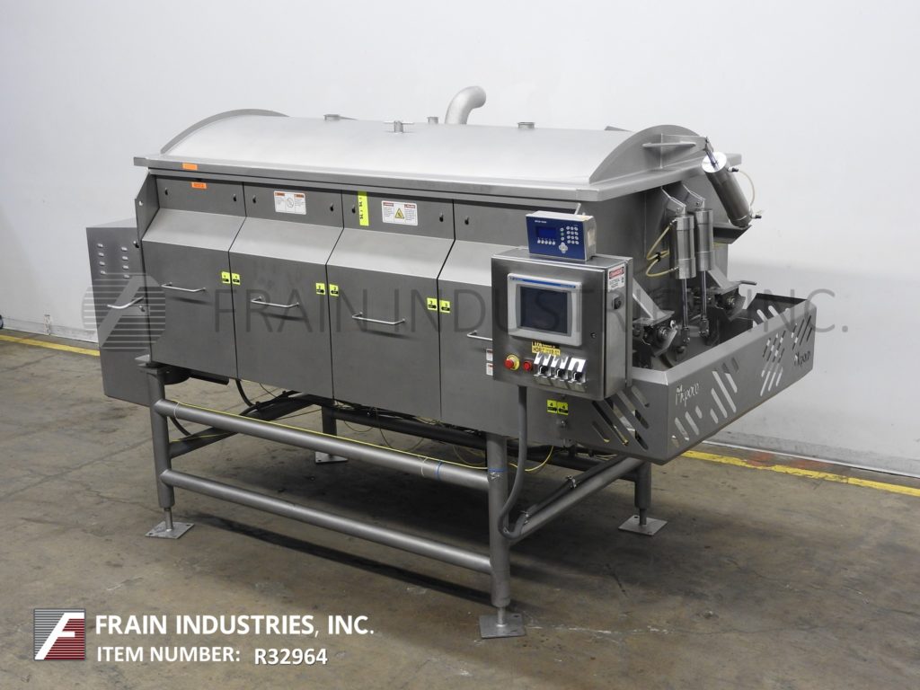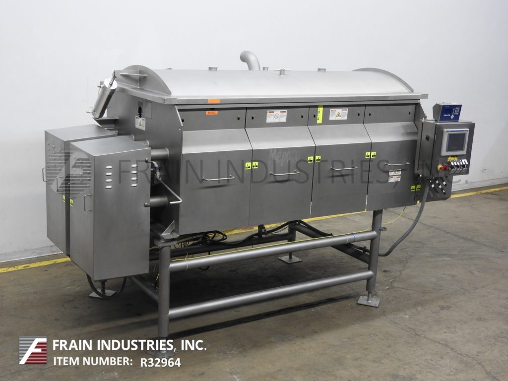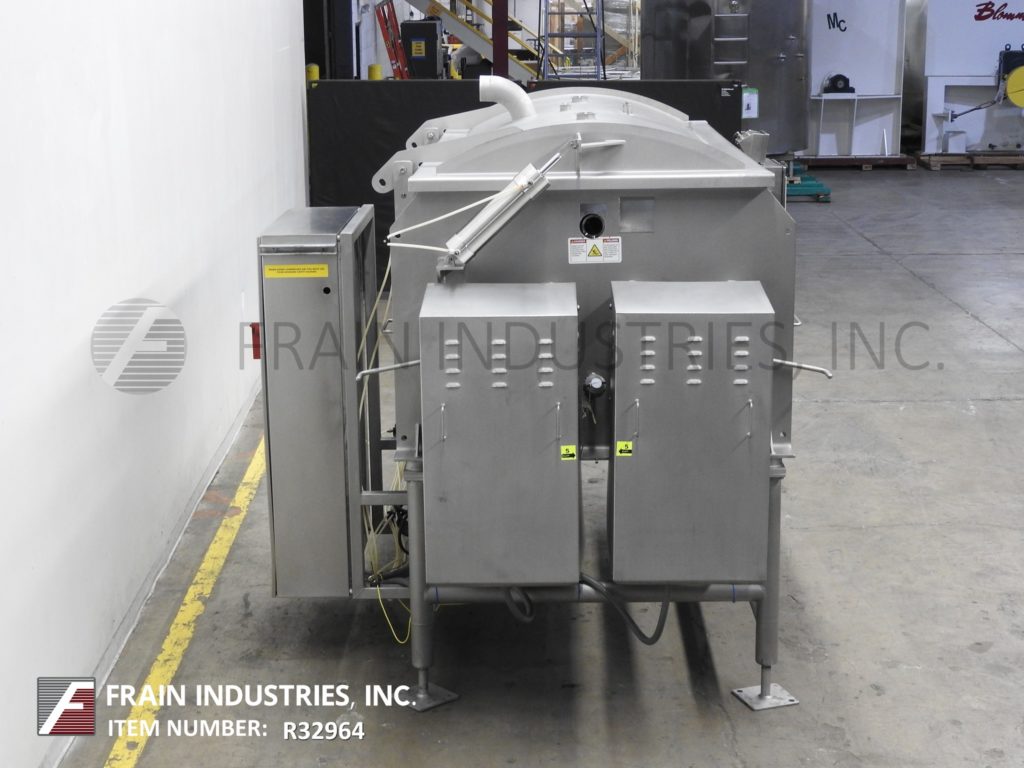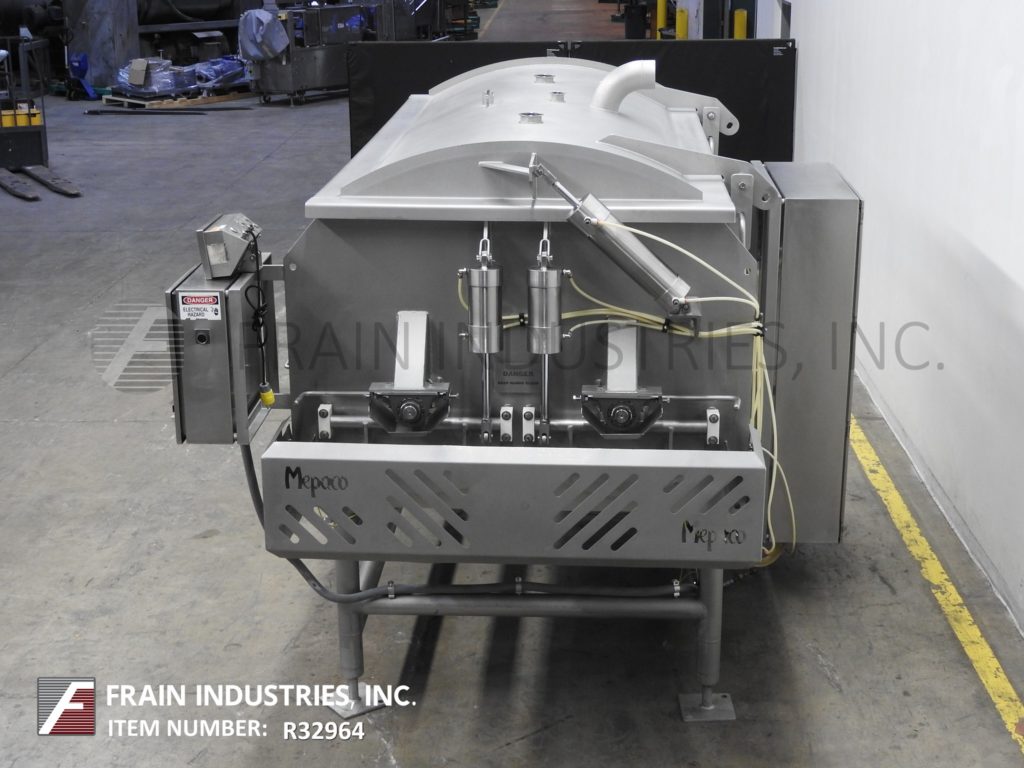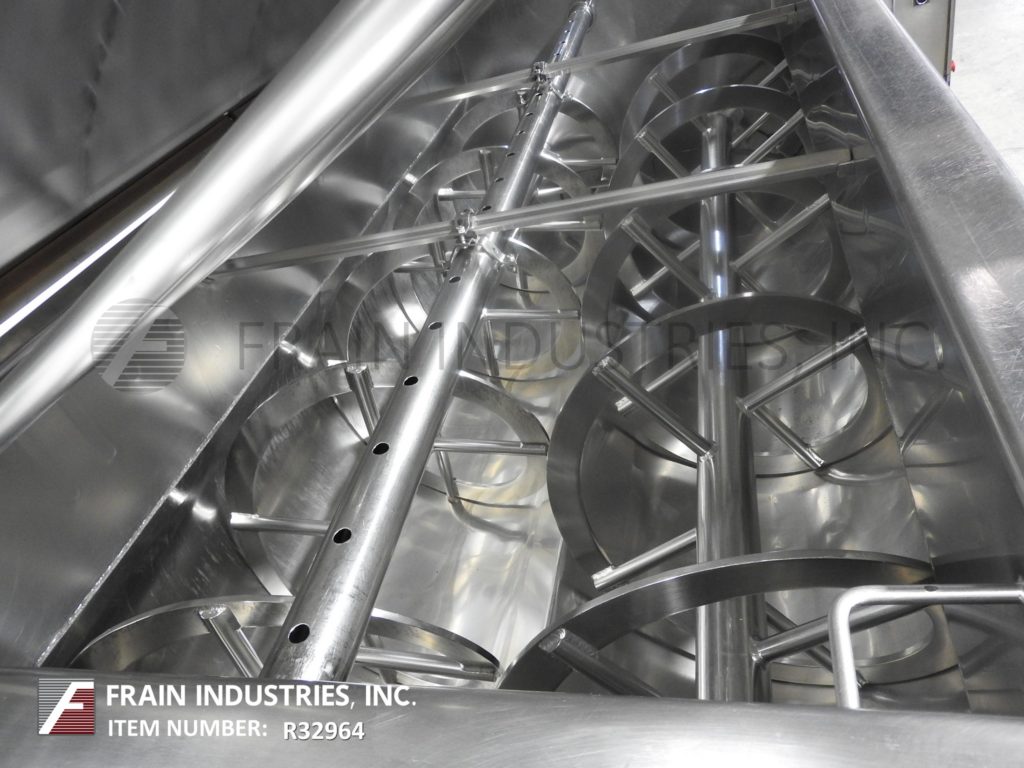 返回所有设备MEPACO,型号170,T304不锈钢,1/2蒸汽凹陷夹套,双槽,Therma混合灶具,额定达5000磅或500加仑的每批产品,每小时金额 - 取决于材料和应用。容量:5000磅或500加仑。纬度尺寸:102“长度;宽度;36“深度每个槽,并设置在27”中心。配备铝合金升降顶部盖板和安全网格,双重重叠的非刮丝带,带蒸汽注射轴,由(2)10 HP电机驱动器供电,带有安全护罩,带MAWP的1/2级蒸汽夹克:90psi @ 375°F和MDMT -20 DEG F @ 90PSI带(4)1-1 / 2“夹克端口(2)每侧和护罩安全保护具有双气动端口,具有40”接地间隙的排出。控制面板具有Allen Bradley PLC,控制器,带Allen Bradley PanelView触摸屏控制和按钮e-stop。安装在重型不锈钢框架上,带水平腿。