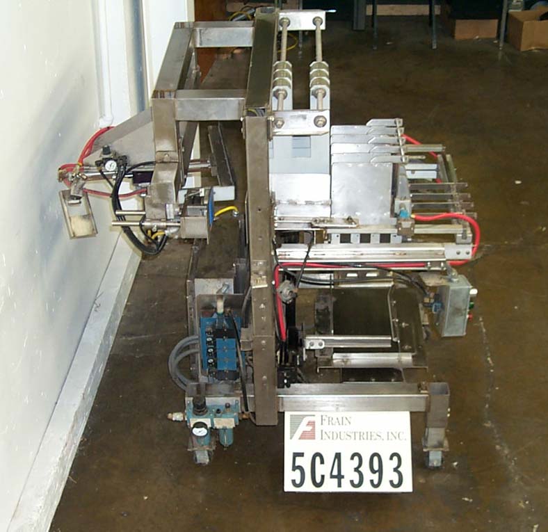返回所有设备Meyer AKRON1型半自动不锈钢落箱包装机,额定速度高达4 cpm–速度取决于材料、应用和操作员的灵活性。最大外壳尺寸为14英寸宽x 20英寸长x 12英寸高。设计用于卷起至现有输送机的占地面积小的装置,在该输送机中,产品被阻流器输送至包装机的整理/拉纳部分,建立包装模式,产品通过“手指机构”落入箱子中,箱子自动卸下。当前设置为3 x 4块模式的211 can。areosol can操作中的最后一次运行。