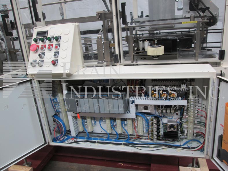 返回所有设备MGS型号HIS 1800,自动,箱安装,包装,胶带封口机,每分钟可以整理12到30个箱子,箱子的数量取决于材料和应用。Case size: 6" to 20" in Length;4"至13"宽度;纸箱尺寸:1"至18"的长度;3/8"至5.6"宽度;深度2.2"至7.2"。配有28“x 30”空白的情况下,杂志,(4)吸盘往复式图片n,宽66“长x 4-1/4”产品在进料输送机,堆垛机产品,单臂ram装载机,72“长情况下穿梭载体与4”长x 4 1/2“宽x 4“高固定桶18日”中心与高层压低,皮瓣关闭部分,2"宽顶部/底部3M箱锥形,双26"长x 3"宽顶部/底部箱夹持带40-1/2放电高度。控制面板有A/B CPU,包选择,箱包,tip up on / off开关,启动,停止与e-stop按钮控制,统计灯条,和安全防护。安装在(6)腿架上。