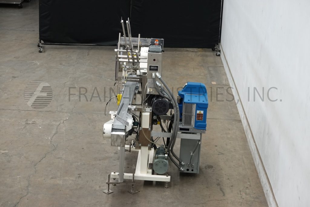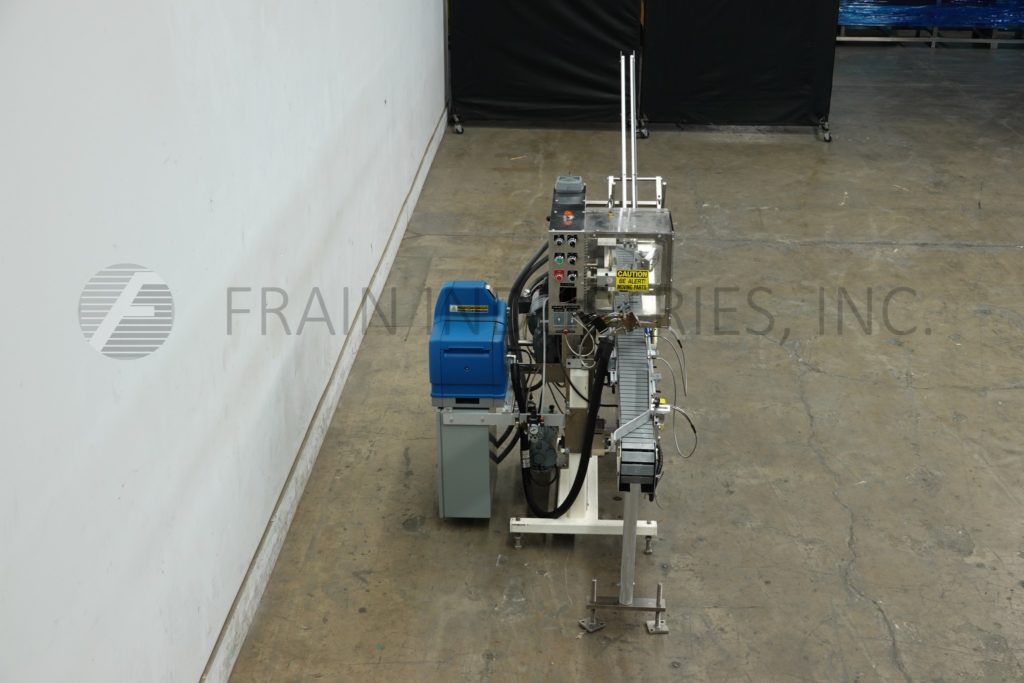 Back to All EquipmentMGS, Model RPP-331, Automatic, stainless steel, (3) head rotary pick n place rated from 10 to 300 placements per minute – depending on materials, application and machines configeration. Product size range: 1" to 4" in Height x 1" to 4" in Width. Equipped with 4½" wide x 92" long conveyor, 48" long coupon magazine with self contained vacuum pump and Nordson hot melt glue system. Control panel has on / off / bypass switches and start, stop. controls. Mounted on stainless steel frame with leveling legs and safety guarding.