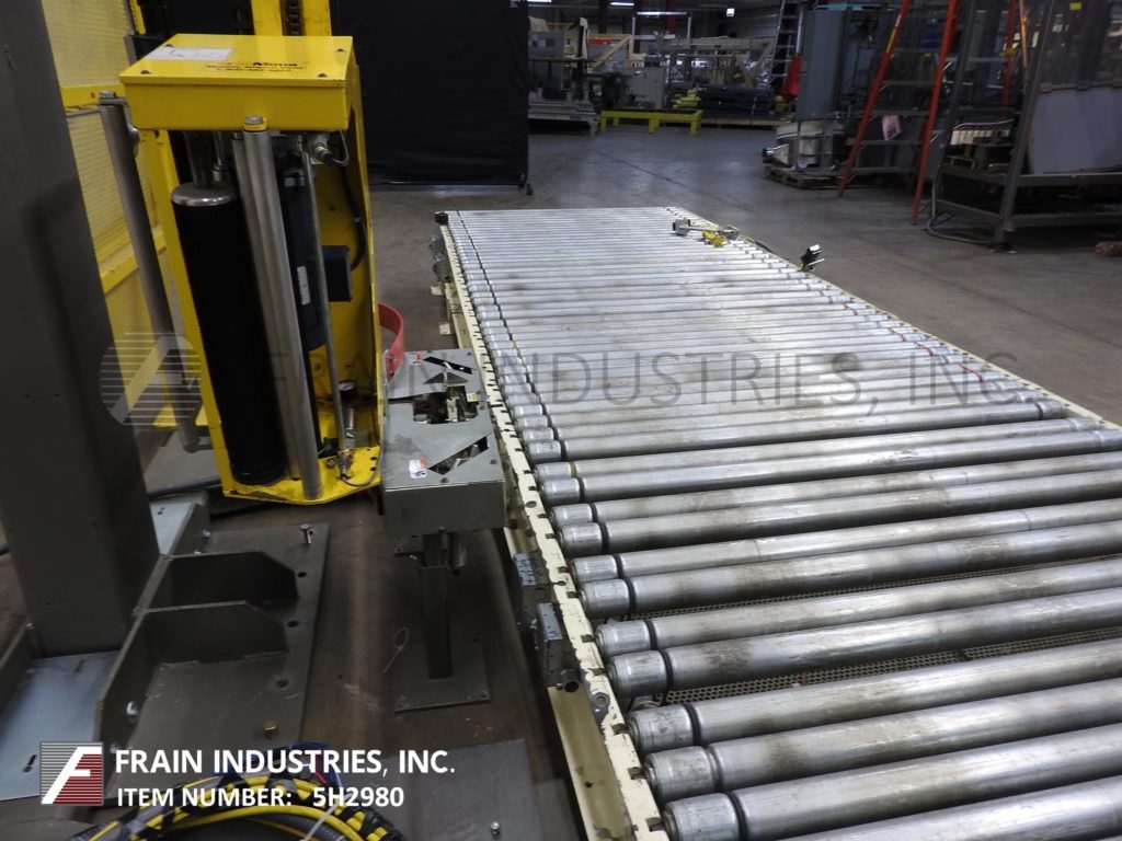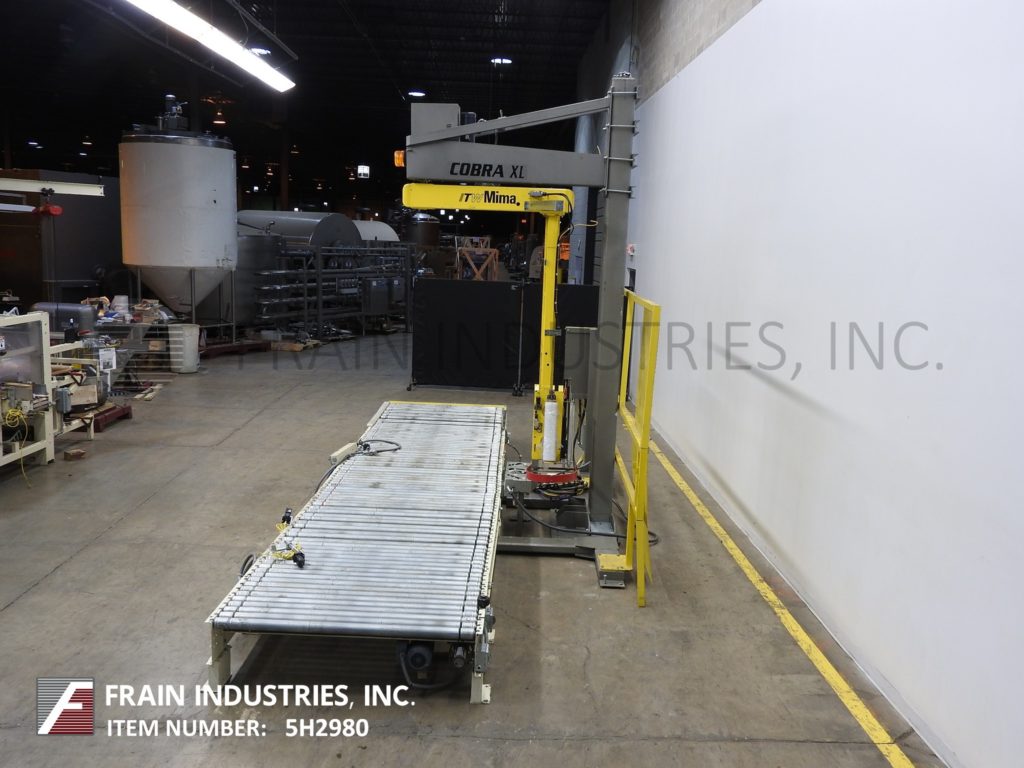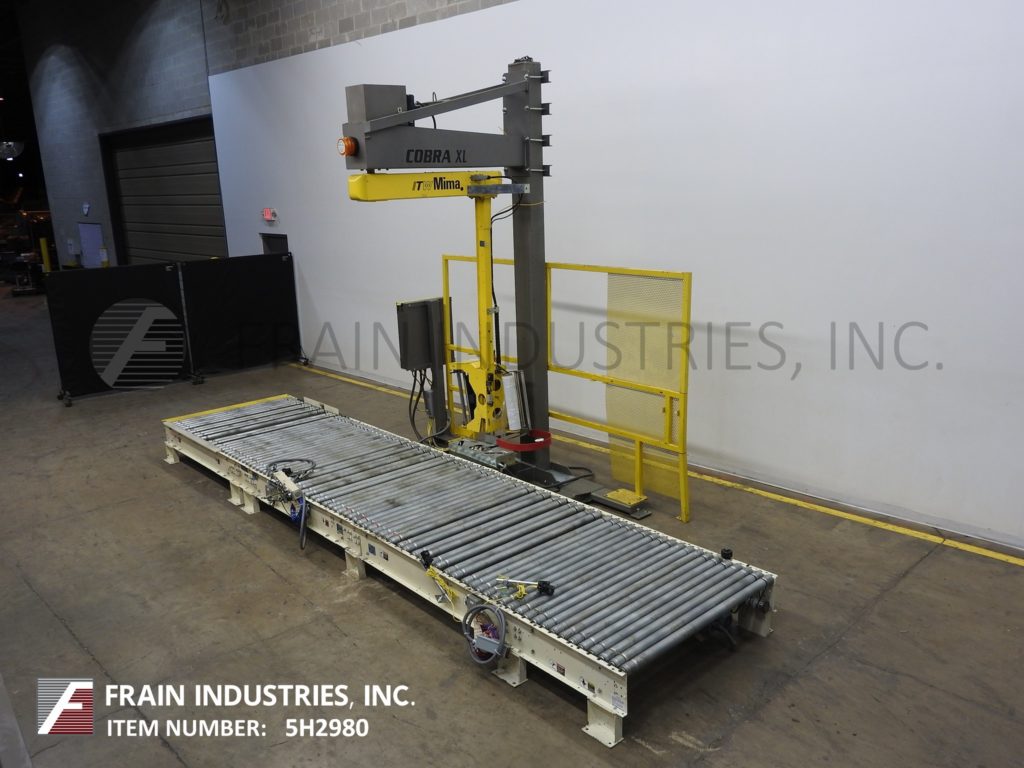 返回所有设备MIMA,模型COBRA XL,自动,架空螺旋式拉伸包装器。评分为每小时10至35个负载 - 取决于材料和应用。负载尺寸:长度为36“至52”;宽度36“至48”;高度36“至80”。最大载荷重量:2975磅。配备57“宽X 262”长滚筒输送机,具有18英寸进样/放电高度和(5)连锁90°传输部分。80“高柱具有薄膜托架输送系统,具有250%的预拉伸和薄膜刷站,带有冲动刀具热封器。薄膜规格:20“薄膜宽度。控制面板有一个带按钮开始/停止控制和触摸板显示器的AB控制器。安装在带有笼式守卫的重型焊接基座框架上。