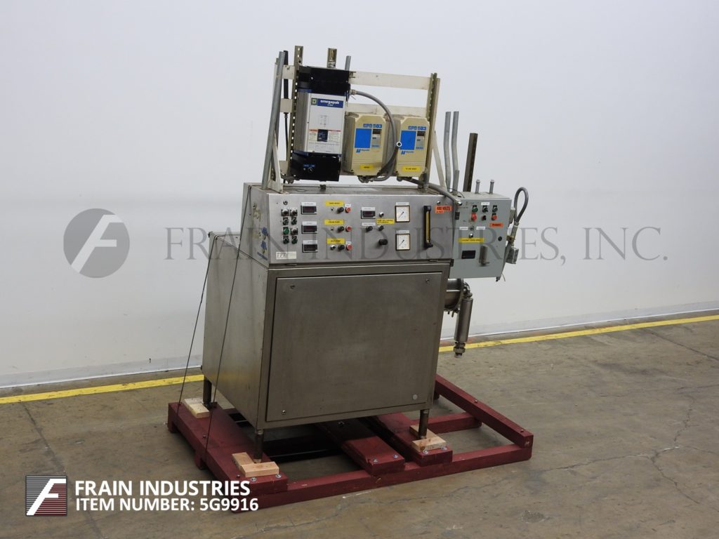 返回所有设备Tanis食品TEC,不锈钢,高剪切,连续运动,转子/定子,搅拌机。每小时600至4,000磅的产品 - 取决于材料,应用和机器配置。配备12“OD混合头,螺栓向下盖,2½”OD / 2“ID Tri-Clamp风格的电荷端口和2½”OD /1½“ID座椅斜面风格放电,带33”地间隙。转子由14英HP驱动器提供动力。控制面板带开/关开关,变速拨盘,空气流量控制拨号和混合头RPM显示屏。