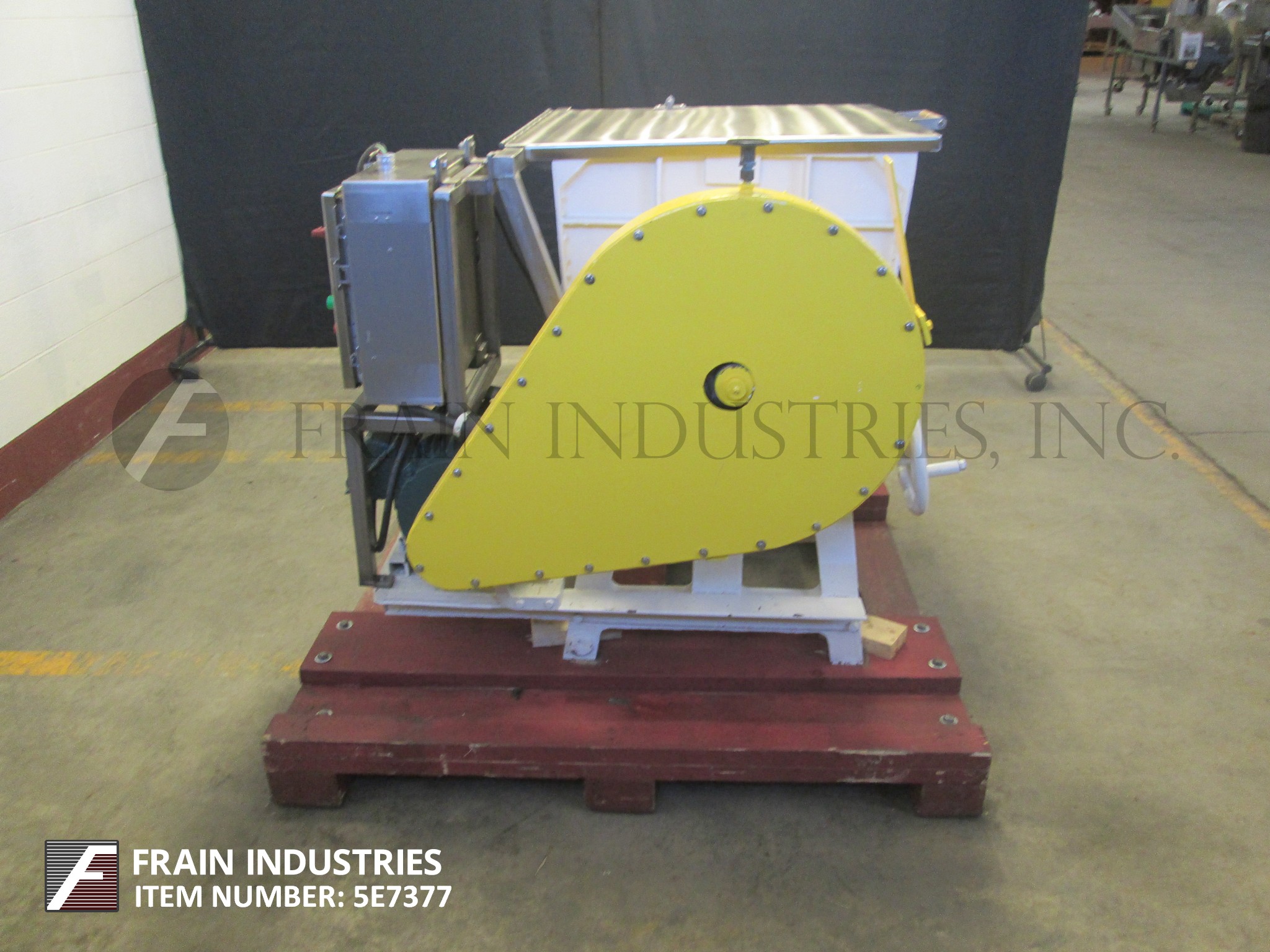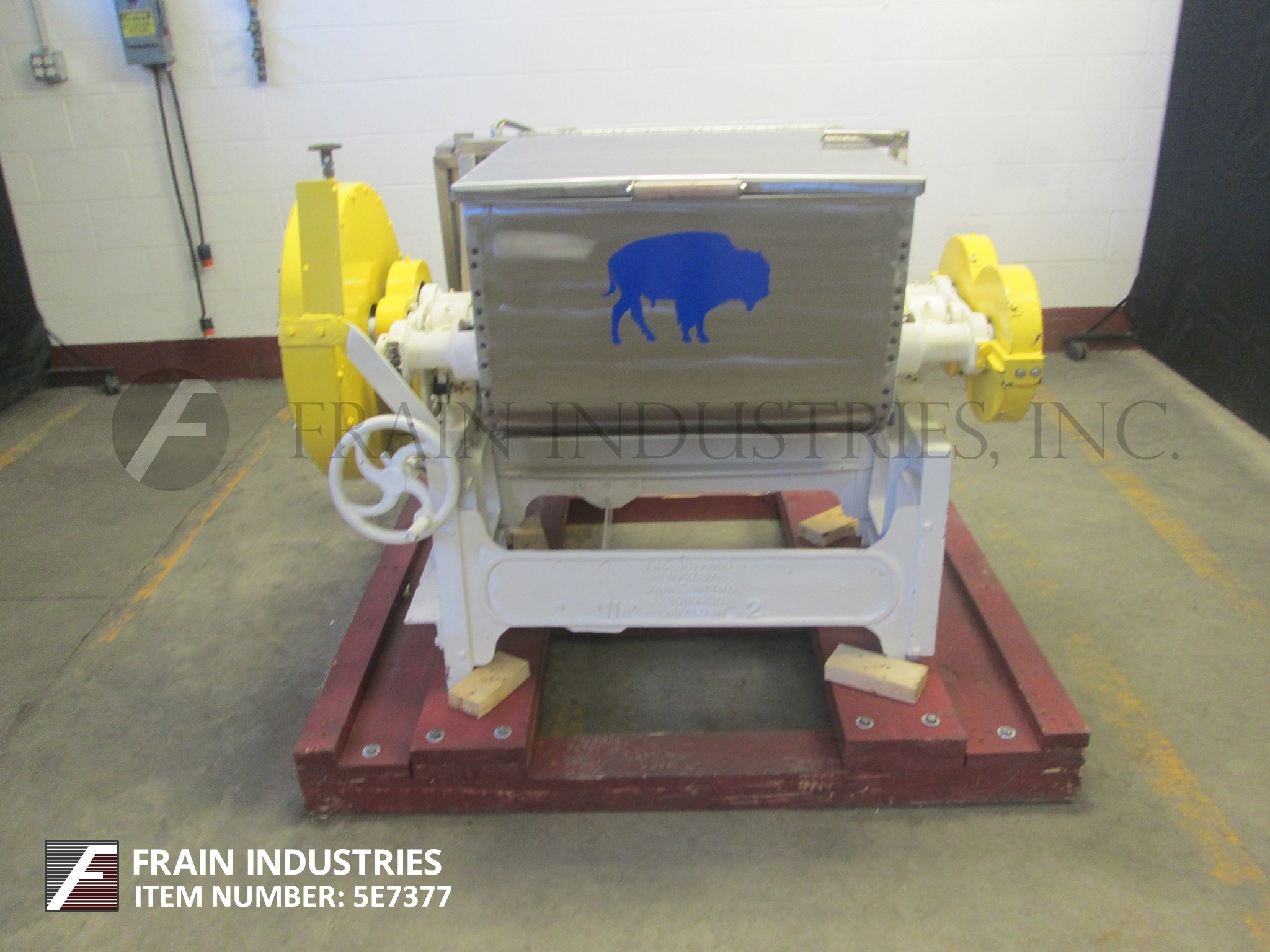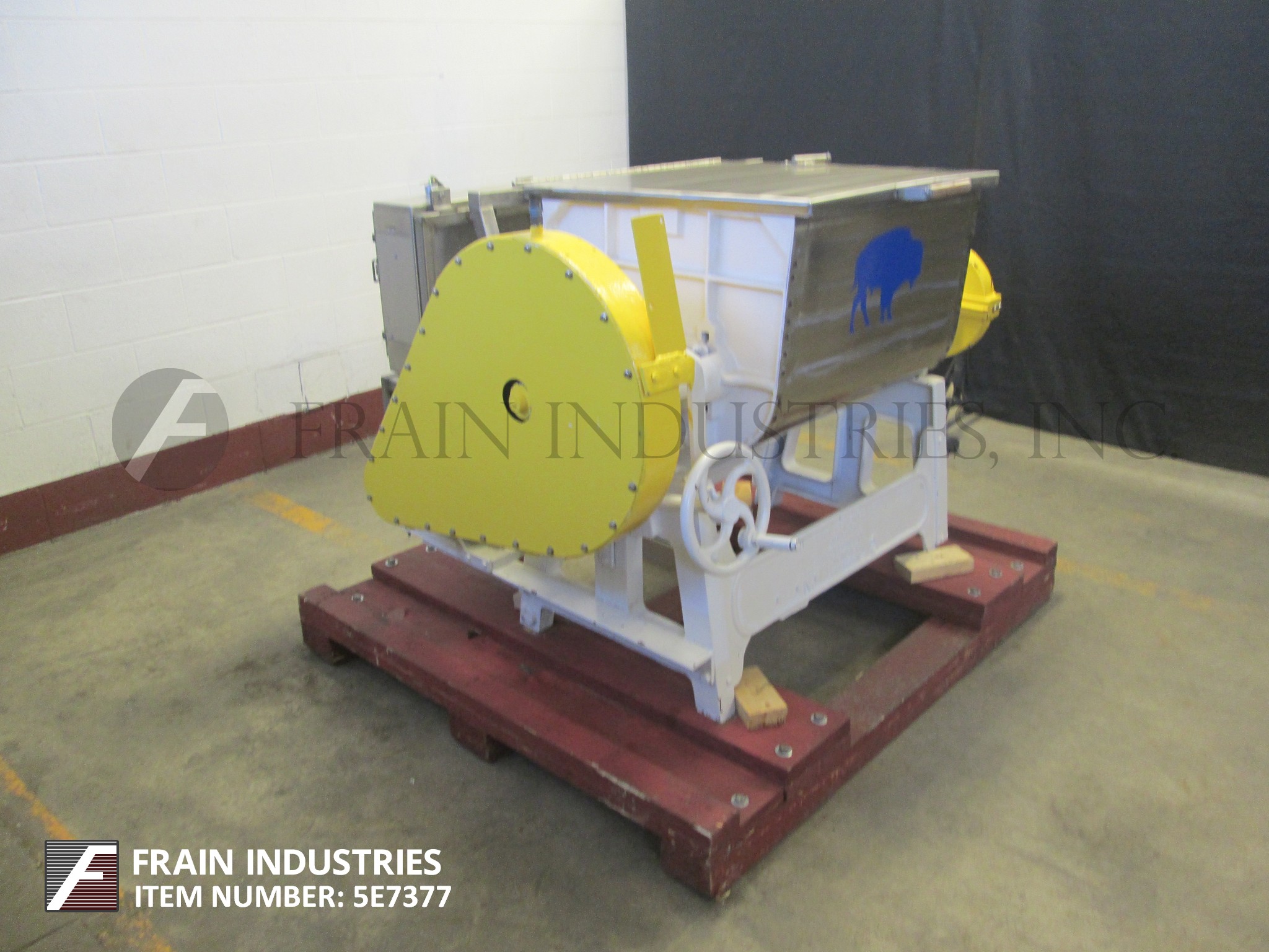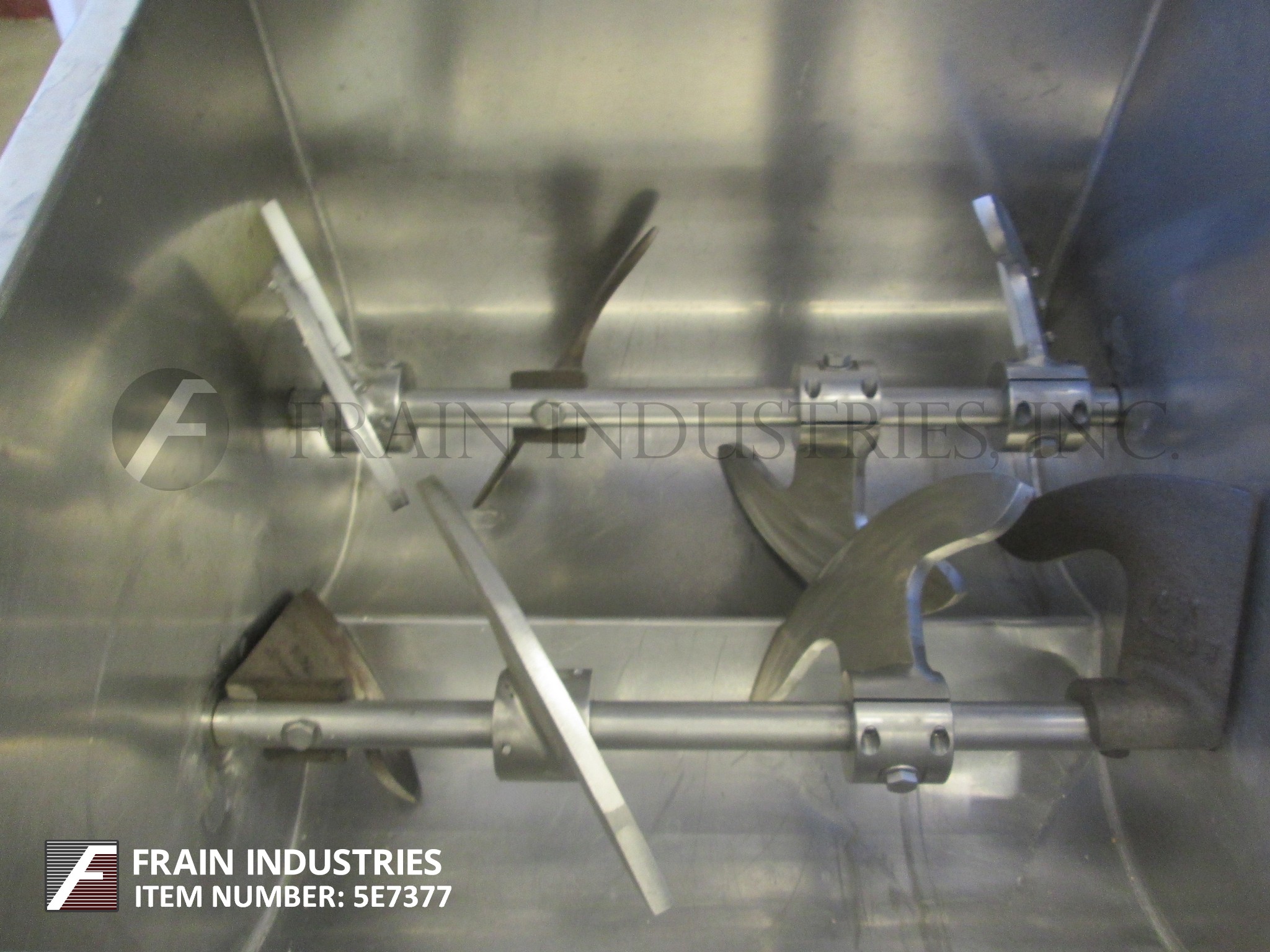 返回所有设备7立方英尺,大约总容量304不锈钢双臂,倾斜式桨叶搅拌机。有双室混合碗总ID维度27 1/2“L x 27个1/2 " W x 20“D,(2) 27个1/2 " L x 2“dia S / S,主要中心轴(2)12个3/4”L x 3 W x 1/8”厚中心和(2)7“L x 3”W 1/8“厚桨在7/8”辐条,倾斜风格产品放电48”地板间隙,5马力变速链条到链轮电机驱动,带有保护保护装置,安装在重型底座上。