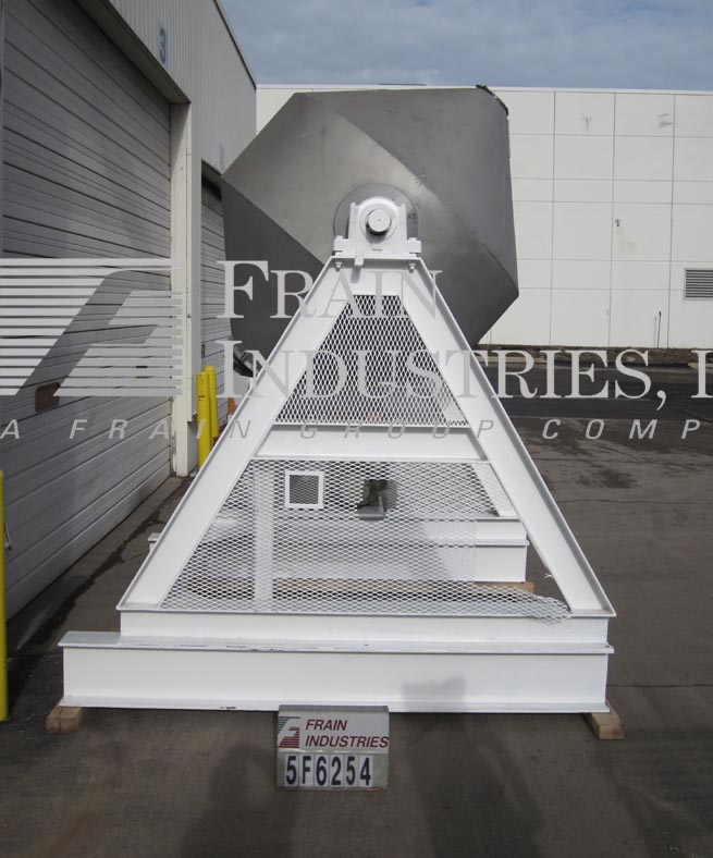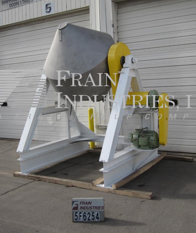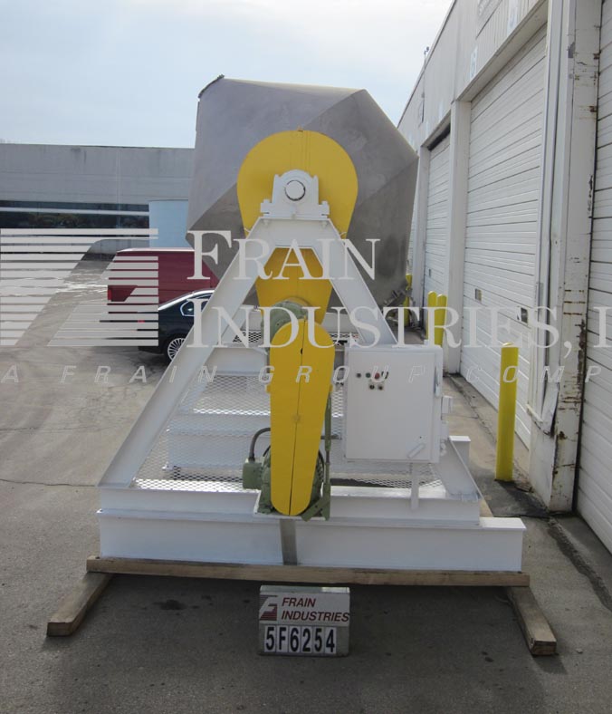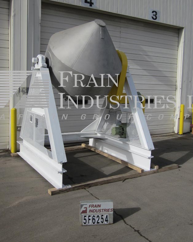 返回所有设备78立方英尺的工作能力,不锈钢,双锥搅拌机。混合室尺寸:124"长度;直径72”;48”斜墙和28”直墙;78英寸的距离从地板到中心轴。配置16" ID终端产品端口,带有螺栓下盖,摆动直径124"和72"排放高度。控制面板具有启动、停止和e-stop功能。25马力皮带电机驱动和安装在重型“A”基础框架。