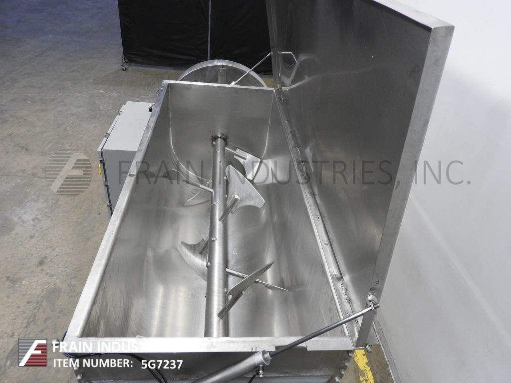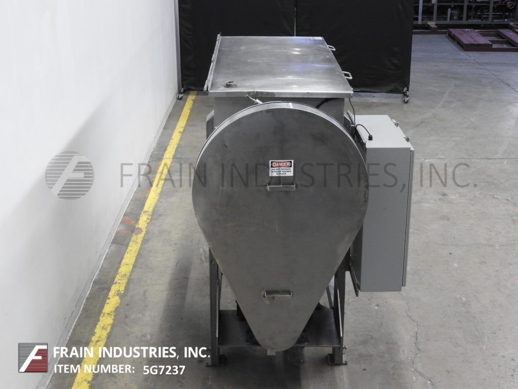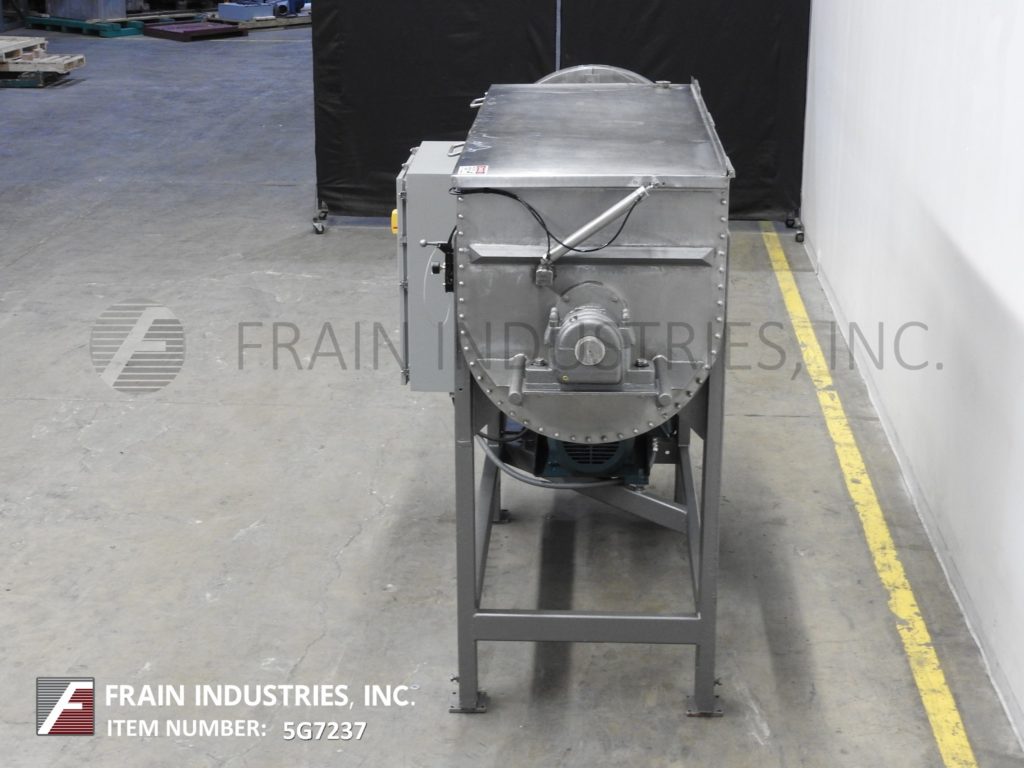 返回所有设备40英尺³(36英尺³可操作),304不锈钢接触部件的桨叶搅拌机。内部混合室尺寸:78英寸长度;30“宽;在深度33”。配备3"直径电机轴,3¾"直径混合轴12" x 9"不锈钢桨叶由25马力驱动,3½"外径/ 3" ID三夹式中心底部放电与36"地间隙。安装在(4)腿基础框架上。