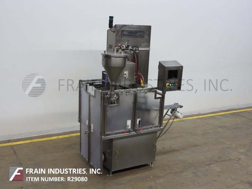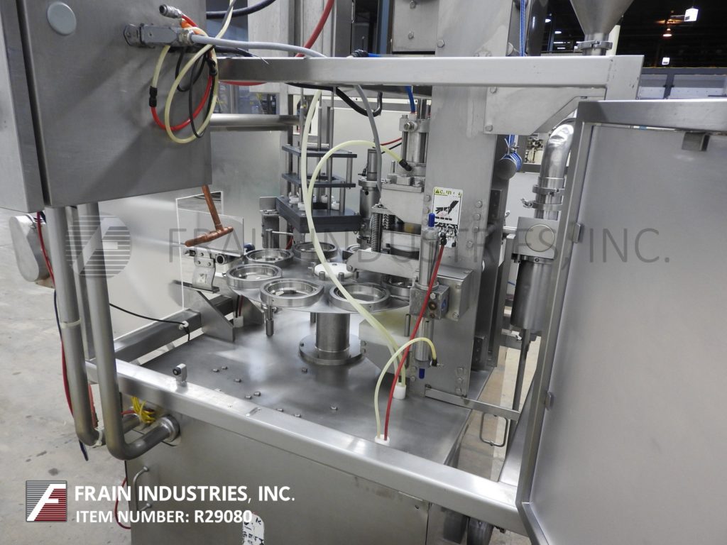 返回所有设备现代型号SR8DC,自动,8个口袋,间歇运动,不锈钢,旋转杯填料,卷筒卷材和热封,每分钟10至40杯 - 取决于材料和应用。填充范围:1 / 2oz至14oz。容器尺寸最多:3“直径(具有适当的变换部件)。配备24”OD旋转桌面,拥有(8)4.5 ID杯车站,螺丝杯砍杯,16“OD x 18”长产品料斗,单头活塞填料,带1-1 / 2“OD x 5”长单活塞和1-1 / 2“正切割喷嘴,无容器/无填充和卷卷卷材涂抹器,单头气动热封头和扫臂拒绝36“LOVEL X 5”宽排出输送机。控制面板具有A / B MICROLOGIX控制器,采用触摸板,(触摸板所需)和液位控制,启动,停止,重置,e-stop和Statis灯棒。安装在不锈钢上基部具有高度可调节的锁定腿和摆动门安全防护。