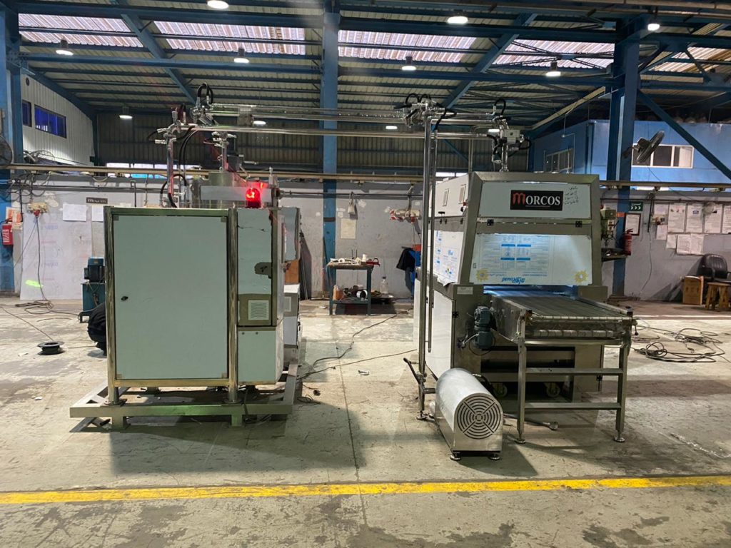 返回所有设备莫尔科斯模型620 PR, 24“宽,不锈钢巧克力登记磅和每小时产品的数量-取决于材料和应用。配备不锈钢丝网产品输送带,通过enrober,配有星泵,不锈钢产品水箱,巧克力储液器,压力管道循环和供给系统,也供给底部部分与单独的管道,使底部波的完全控制和鼓风机调节空气的体积或速度和气流角度。振动系统,扫气辊带刮刀调节底部厚度,清除多余的巧克力。控制面板上有触控板控制器,读数和房间热和水的温度控制器,皮带和搅拌器开关,巧克力泵,前进和反向开关,启动,停止和e-stop按钮。安装在重型底座上,脚高度可调。