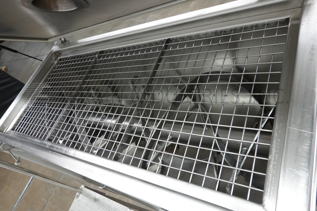 Back to All EquipmentMorcos, Model RM600, 21 ft³, (17 ft³ working capacity), double ribbon mixer with pounds of product per hour – depending on materials and application. 316L stainless steel contact parts. Inner mixing chamber dimensions of 60" in Length; 24" in Width; 26" in Depth. Equipped with flip up cover, lift out safety screens, 2¼" OD motor shaft, 1¾" wide x ¼" thick (outer) and 1¾" wide x (¼)" thick (inner) stainless steel ribbons. 11" OD center bottom discharge with 50" floor clearence and 7.38 Hp motor. Mounted on stainless steel (4) leg frame with 35" wide x 121" long stainless steel platform set 57" off the ground with 36" high rails and a 6-step staircase.