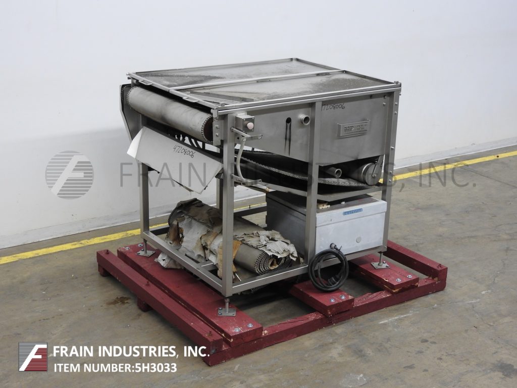 返回所有设备MP设备,型号CO39,无限介质过滤器。配备(2)2½”OD / 2”ID三夹式充电端口,36”宽网滤带由1 HP驱动刮刀驱动,(2)2½”OD / 2”ID三夹式排出端口和底部安装的滴盘。控制面板上有开/关开关和按钮启动/停止控制。