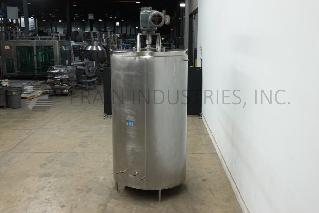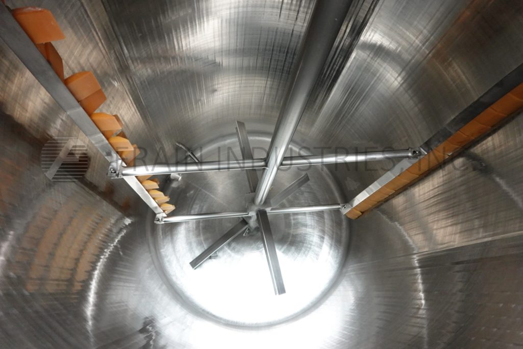 Back to All EquipmentMueller, 1000 gallon capacity, 316 stainless steel jacketed process tank. Vessel dimensions: 57" ID; 97" straight wall. Equipped with lift up covers, 5 Hp top mounted side scrape / bottom sweep agitator, bottom side 3"OD / 2½"ID sanitary discharge with 10" ground clearance.