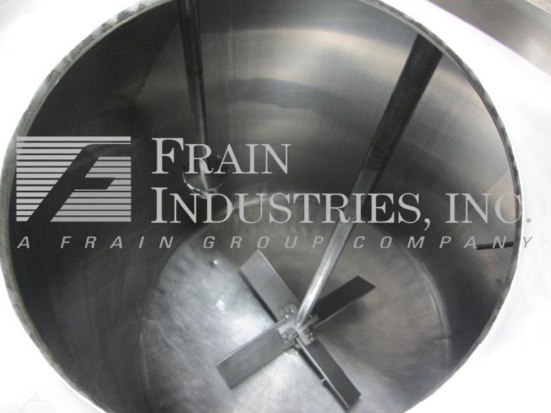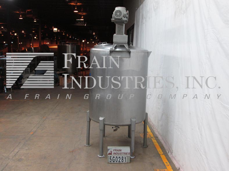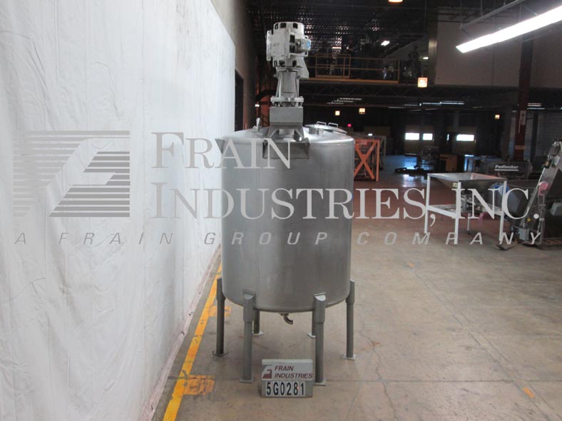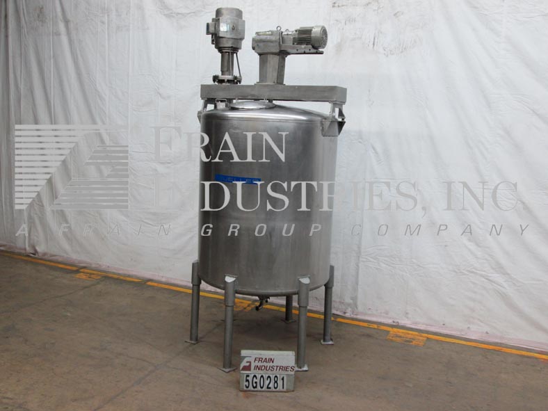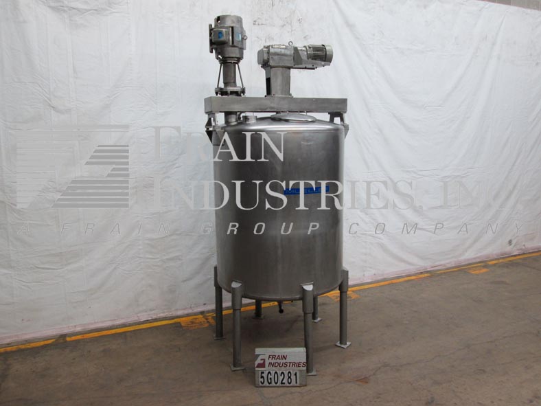 返回所有设备穆勒,800加仑,316不锈钢,单壁搅拌罐。容器尺寸:60" 直径68" 直壁。装备有圆顶顶部桥安装2马力桨式搅拌器,25马力锯齿高剪切混合器,18" 直径的人孔,6" 顶部入口与可移除盖,水平传感器,盘底,和一个3" OD三叶草形中心底部排出与离地间隙的截止阀和20" 。安装在不锈钢腿上。