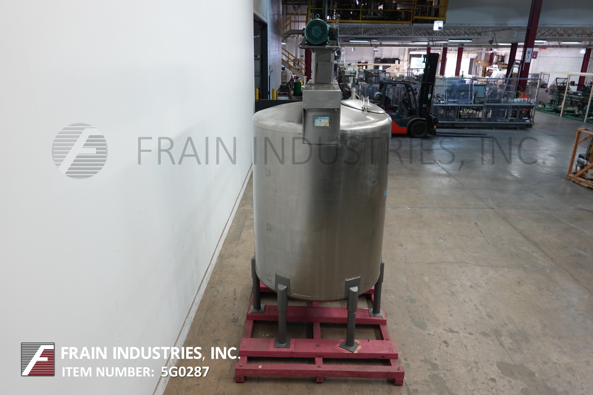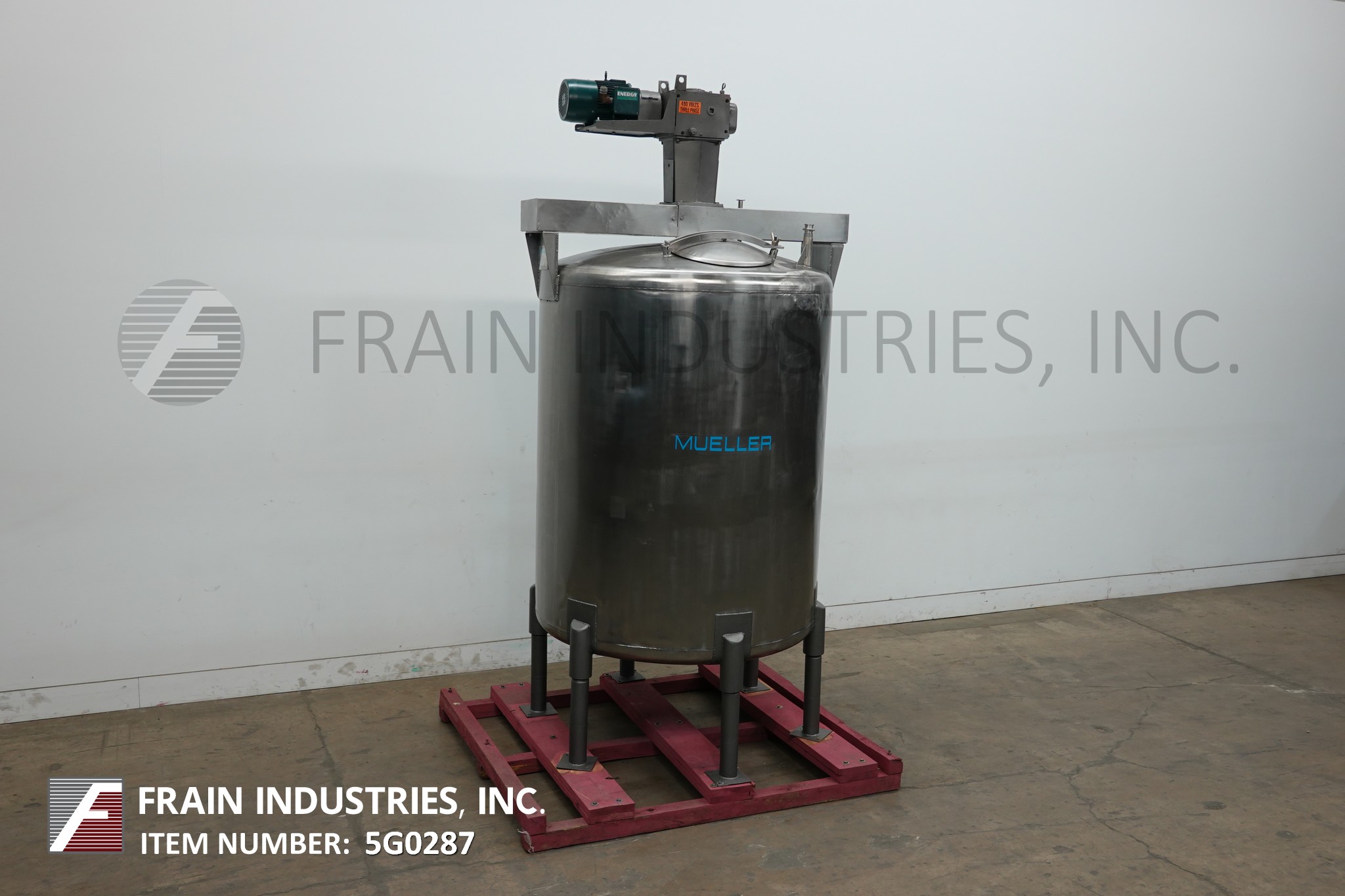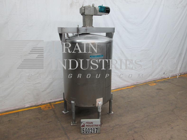 返回所有设备Mueller,900加仑,316不锈钢,单墙,混合罐。血管尺寸:60“直径; 72”直墙。配备圆顶顶部,中心桥式桨式搅拌,18英寸“直径通道,四个固定挡板,两个3.5”od三层顶尖入口,菜底,以及3“OD三星中心底部放电,10”地面清除。安装在不锈钢腿上。