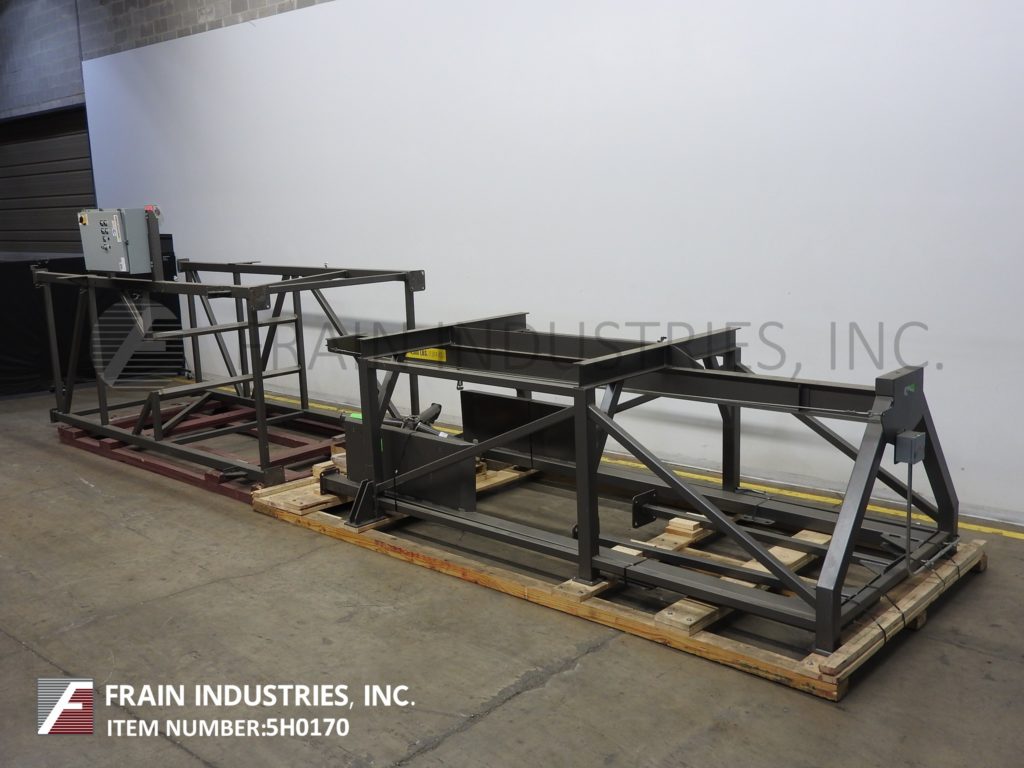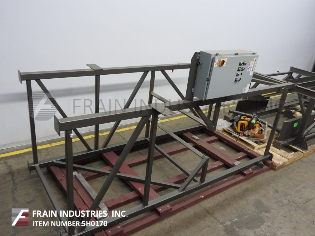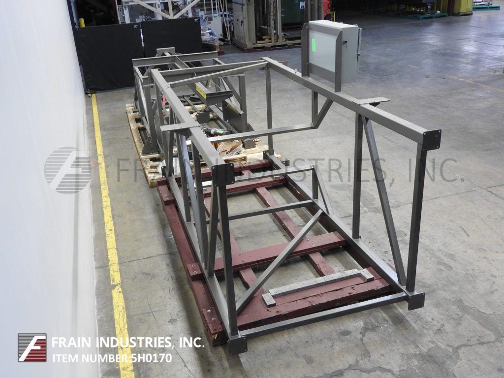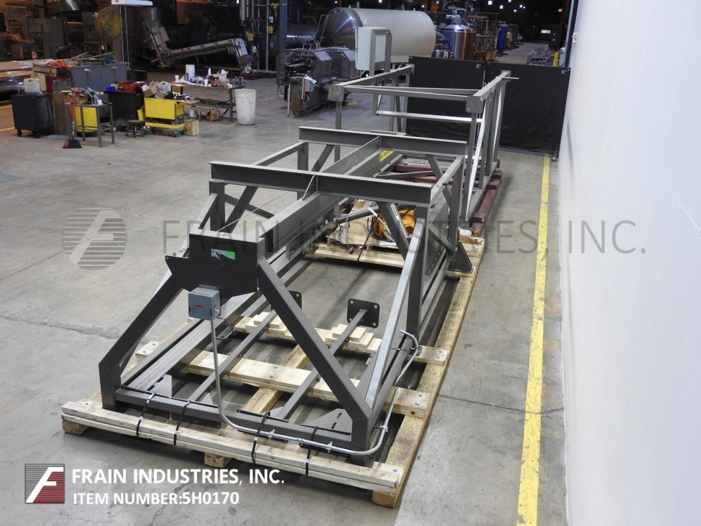 返回所有设备国家散装设备,散装袋,超级袋,卸货系统。额定最大负载4000lb。每小时的产品重量取决于材料,应用和操作的灵活性。配备双链提升系统,2.4马力提升驱动/ 0.53马力运输驱动,光幕,54英寸x 54英寸加载板和跑道“I”梁,延伸125英寸,通过主框架进行提升,然后移动到卸载部分。控制面板上有按钮,灯帘复位,滑动开关,小车进出开关和升降开关。用于大袋,或超级袋。安装在重型支撑架上。