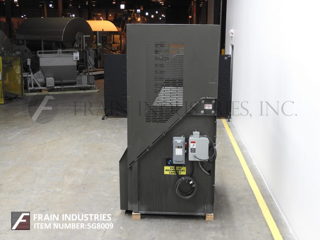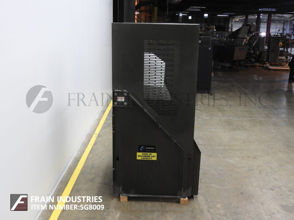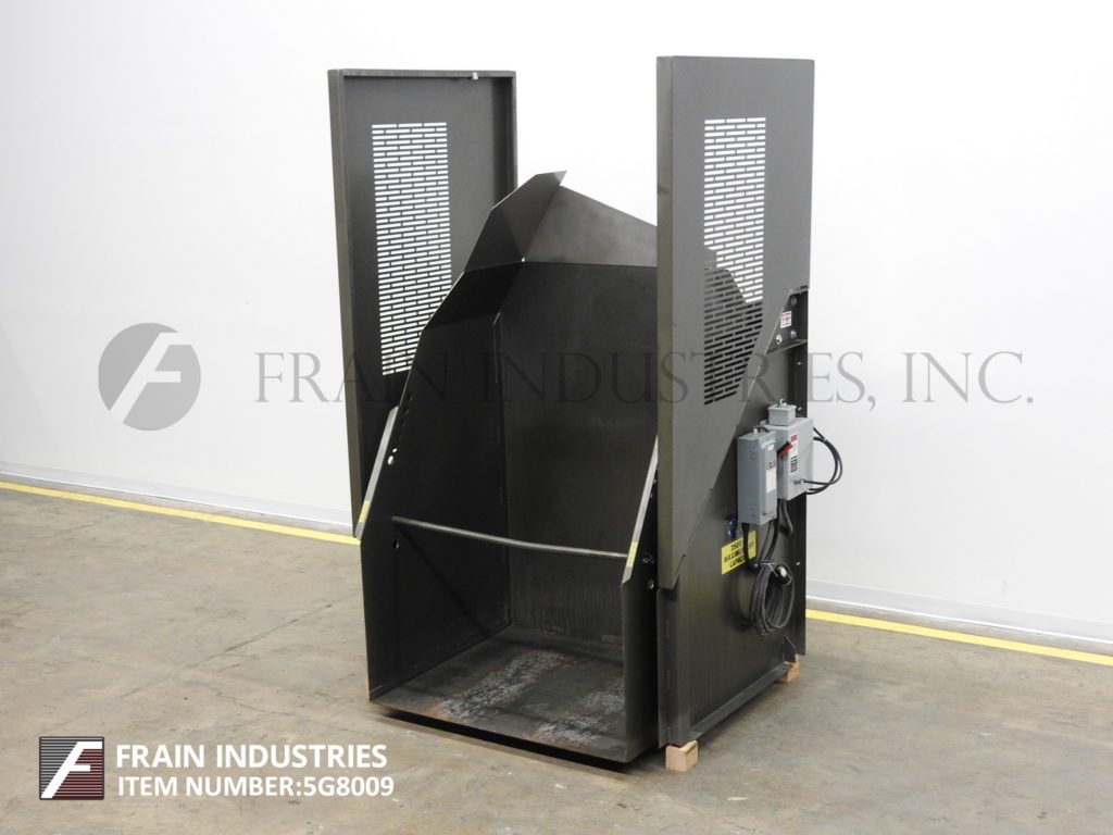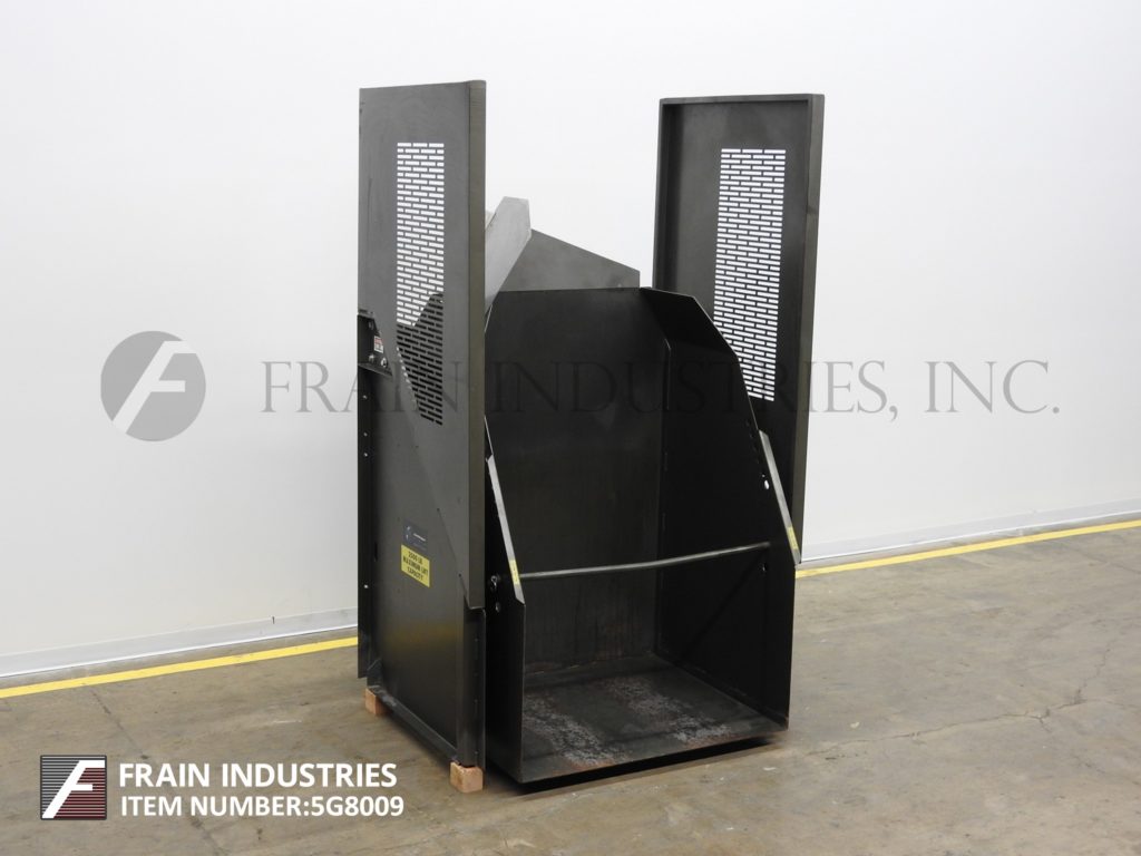 返回所有设备国家散装设备,型号PowerMaxx 21-25603-50C,Tote Dumper。额定最大负载2,500磅。配备50英寸宽x 32“长x 60”高拨号室,可拆卸锁定杆和延伸的侧卫。由液压组件供电,带有升高开关的液压泵。需要140英寸的高度高度的吊顶间隙和放电62“。