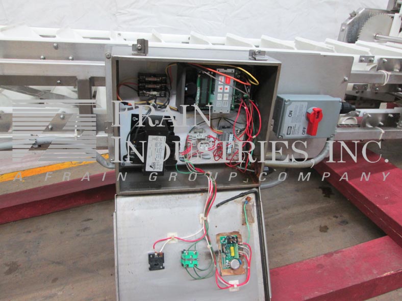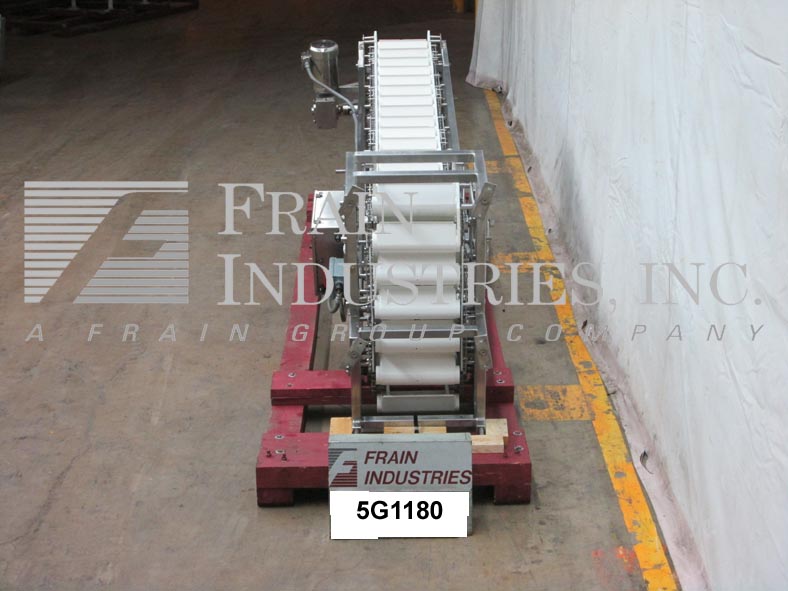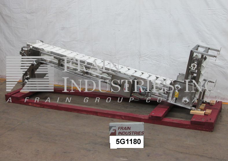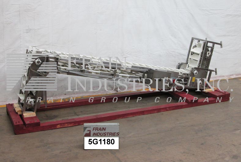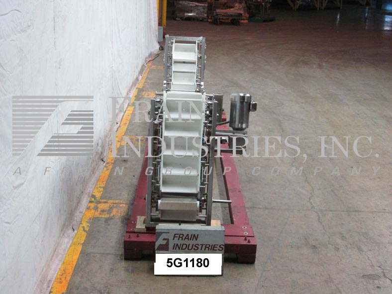 Nedco Ultralift不锈钢桶电梯。配备6-1 / 2“长度12英寸宽3-1 / 2”深桶,27“水平地板运行(19”高进入),122“垂直上升,30”水平顶部运行和146“排放。安装在六条平整腿上。