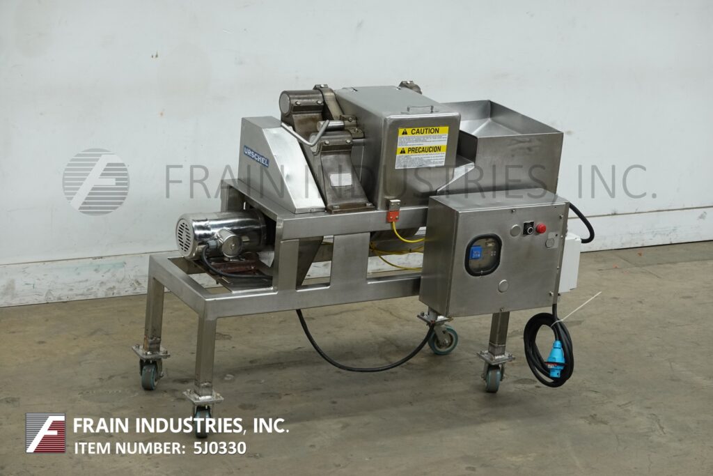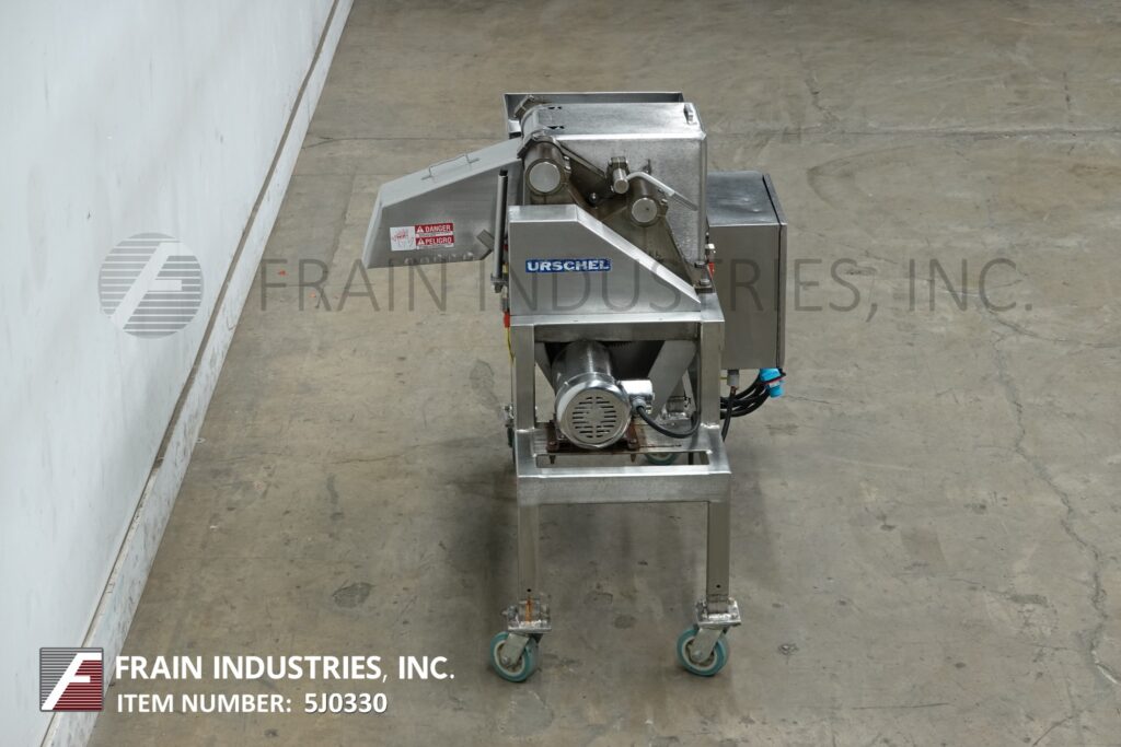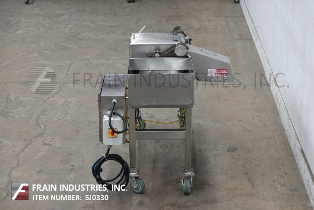 Back to All EquipmentUrschel Model G, Stainless steel USDA, dicer, slicer and cutter used for a variety of food products with volumes per hour – depending on materials and application. Utilizes slice, crosscut, and circular knifes with size ranges: 1/8" to 5/8" Slice Thickness, 9/32" to 3" Crosscut, 1/8" and up to 3" Circular. Continuous motion for uninterupted production and accept products up to 5-1/2" in any dimension. Product is fed thru hopper into a rotating impellor to the blades. Equipped with stainless steel feed hopper, discharge chute and lift off safety guarding start and stop push buttons controls. Mounted on stainless steel frame with casters.