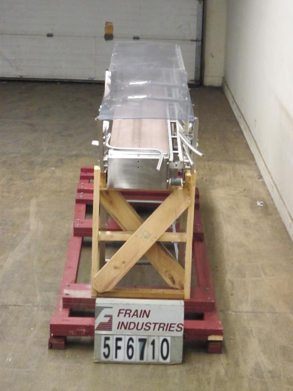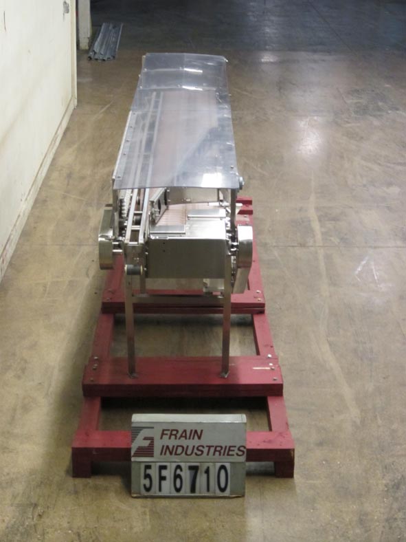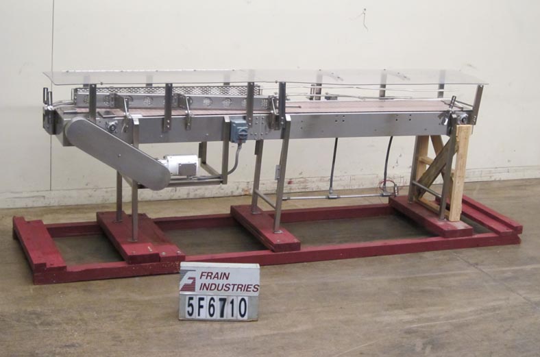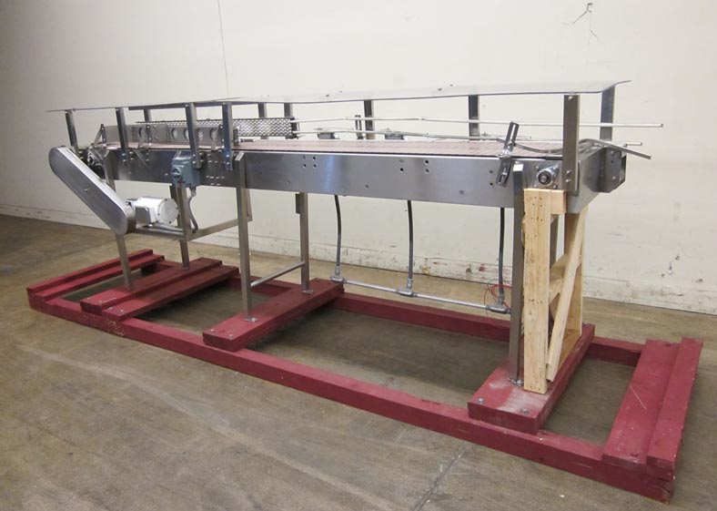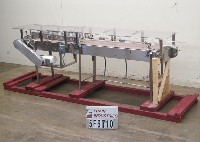 返回所有设备Nercon不锈钢堆积台。配备4.5"宽127"长的德林直通过输送机,15"宽127"长的德林堆积输送机,双4"高58"长的滚子导轨从19"到4"在出料,3个限位开关,39.5"进/出料,和开关控制。另外,23"宽的144"长(72"铰链)Lexan覆盖安装在输送带上方10"。安装在不锈钢框架上。