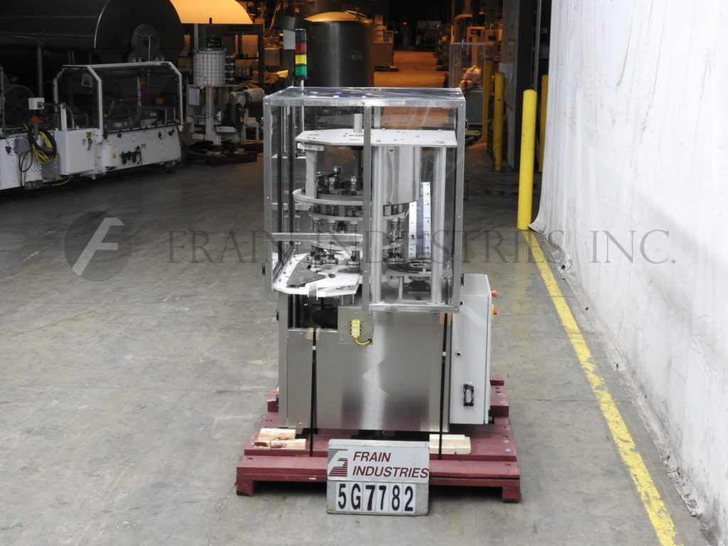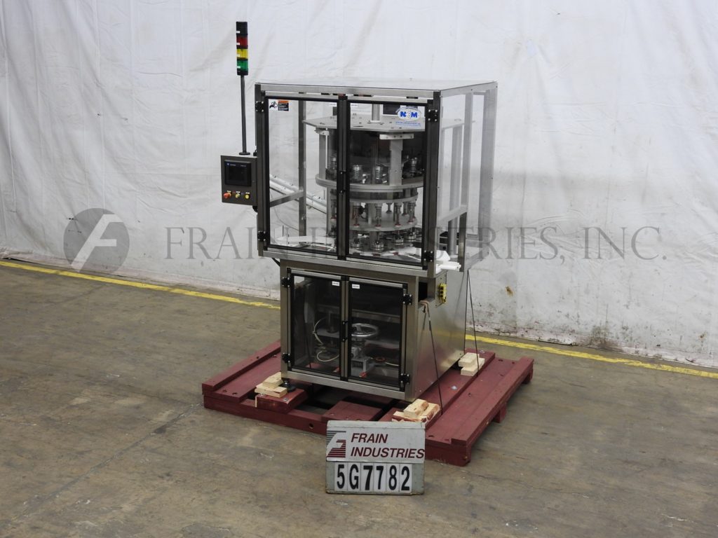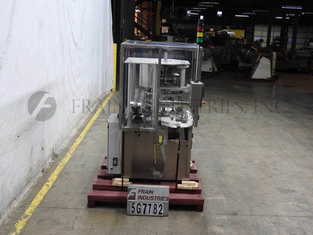 返回所有设备新英格兰型号NERCA12,旋转12头,不锈钢盘封盖。从每分钟50到200个集装箱额定 - 根据材料和应用。帽的尺寸范围:13毫米至89毫米,容器尺寸范围:在直径为1" 到5" ;2" 至7" ,在适当变更部件的高度。配备有星轮容器和盖索引,一22" diamter转台与51/4组12摩擦卡盘头的封盖机“ 中心,夹头拉销为快速释放变化接管;适用于各种各样的盖和容器的。控制面板具有与AB的PanelView 600和安全联锁防护的A / B控制。安装在不锈钢基架。
