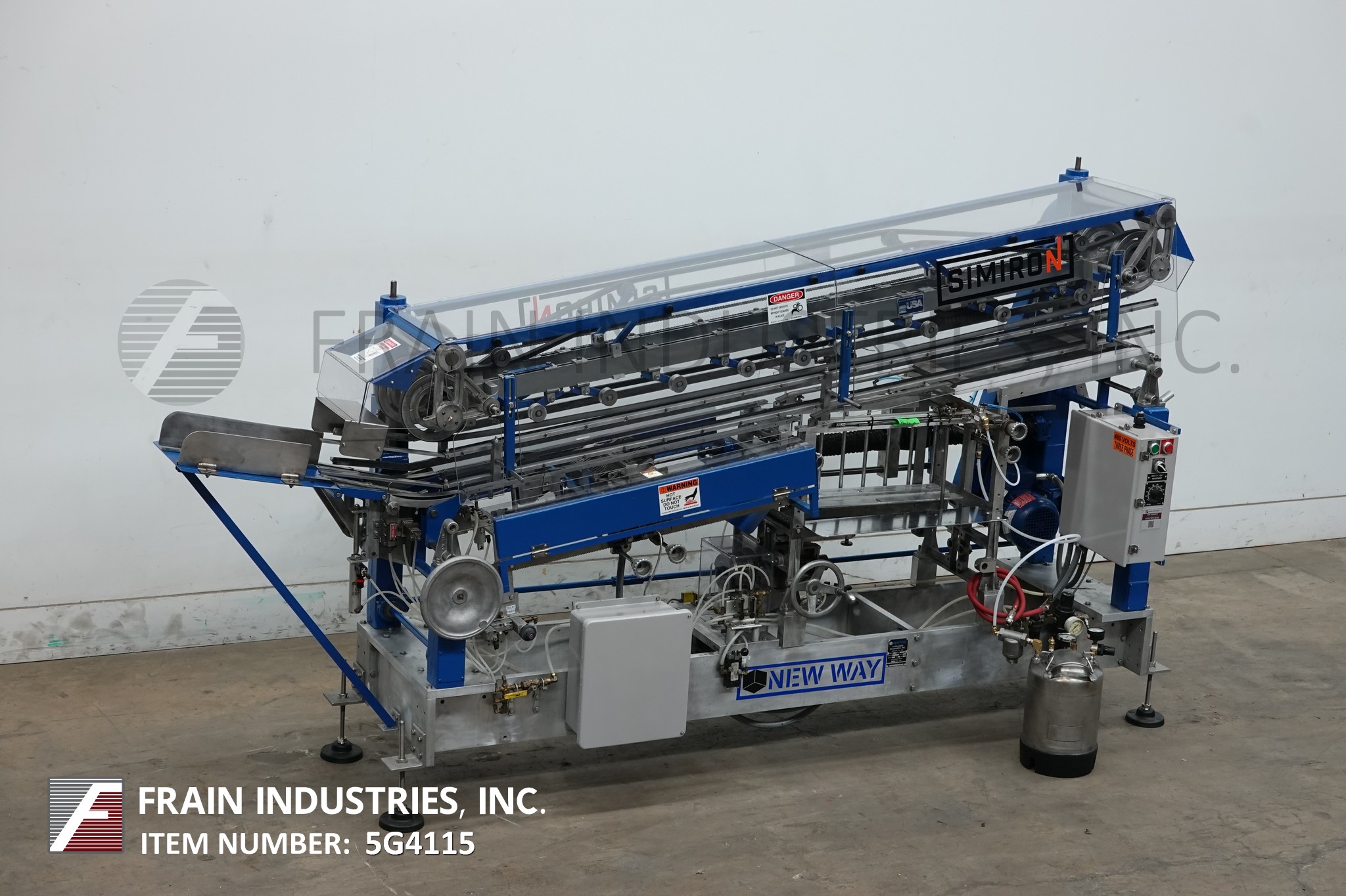返回所有设备新的方式型号E5SC,自动,滚动,胶水,包装贴标器从30到300个容器每分钟 - 取决于材料和应用。集装箱尺寸范围:2 - 7 3/16“直径,2 - 8-3 / 4”标签高度。配备了双集装箱搬运带,能够处理金属和塑料容器,可调节的单机械标签杂志,双热熔胶罐,带滚筒涂抹器和Valco冷胶圈密封系统。控制面板启动,停止和胶水罐温度控制。安装在重型基础框架上。