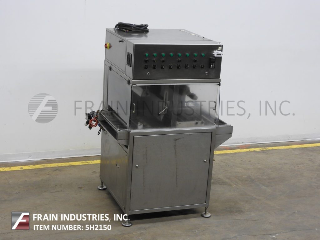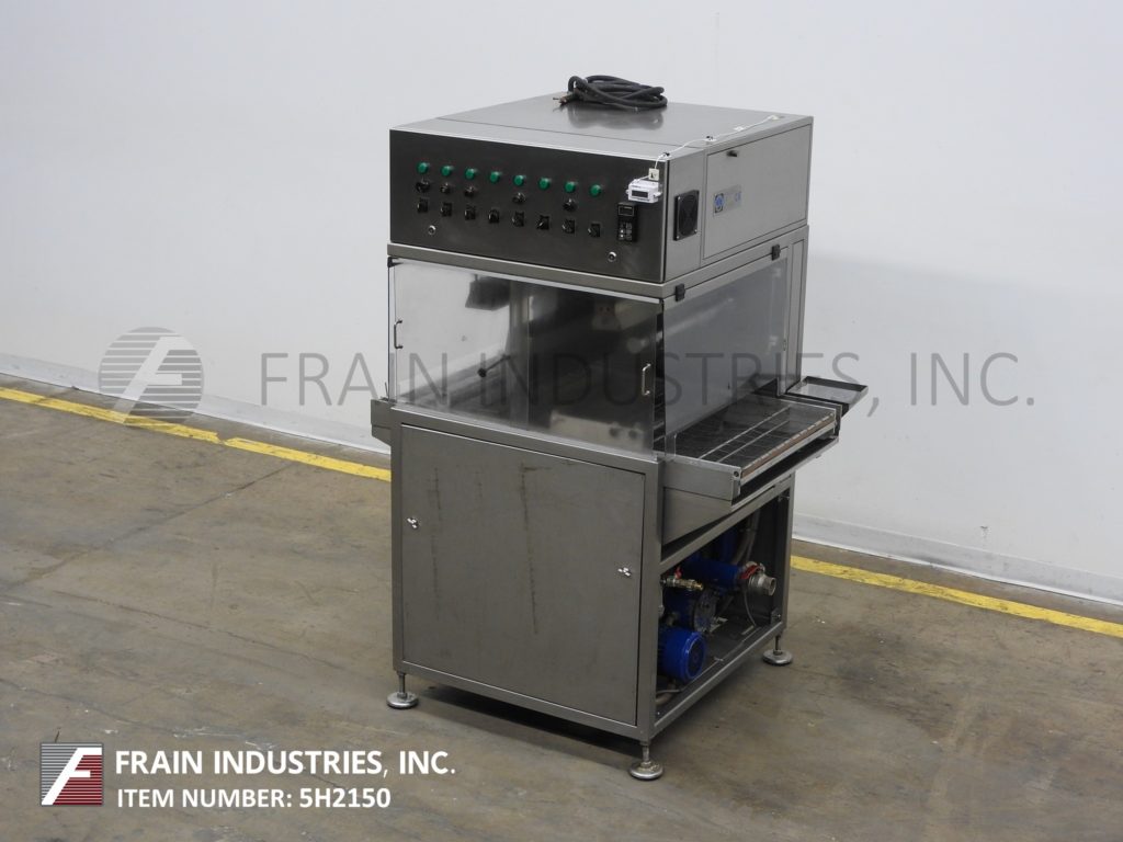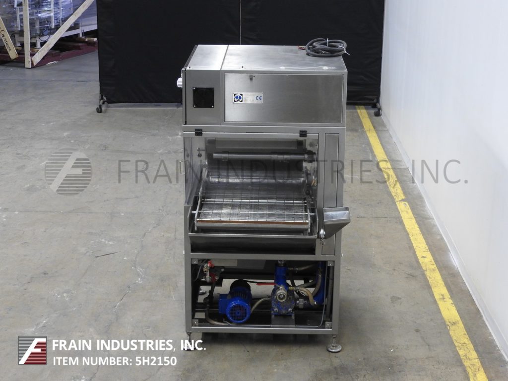 返回所有设备Nielsen模型注入JR,24英寸宽,不锈钢顶部和底部巧克力侵入,每小时磅产品 - 取决于材料和应用。配备24英寸宽x 47“长不锈钢网带,通过舵机,38”进入进料和排放高度,(2)窗帘可调巧克力粉丝,鼓风机,细节,振动筛,带滑动和翻转安全门的架空加热器。1-3 / 4“ID螺纹巧克力供应口用产品服务平移和PD循环泵。控制面板具有带数字读出的温度控制器,网格带速度,鼓风机,顶部加热和灯具,巧克力和供应泵控制与E-stop. C.E. certified. Mounted on stainless steel (4) leg base frame.