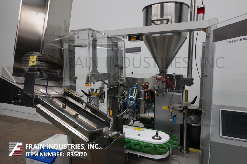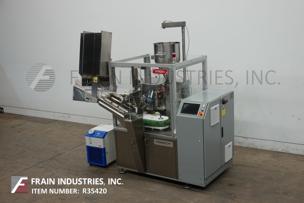 返回所有设备诺登602型,自动,热空气,塑料或层压管填充和封口机额定从10至60管每分钟-取决于材料和应用。管尺寸范围:直径10mm至50mm;50毫米至250毫米的高度帽包括在内。填料大小范围:1ml至360ml(适当更换零件)。配备不锈钢产品料斗,盒式空管库及进料溜槽,18口袋回转塔,管对准定位,无管/无填充,自底向上填充,热空气密封钳口,配有循环水冷水机及液位控制器。控制面板有诺登Easyware ELAU控制器彩色触摸屏控制面板和启动,停止,e-stop按钮和统计灯。安装在不锈钢框架上,配有联锁安全保护装置和调平支腿。
