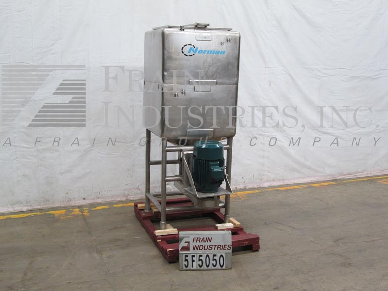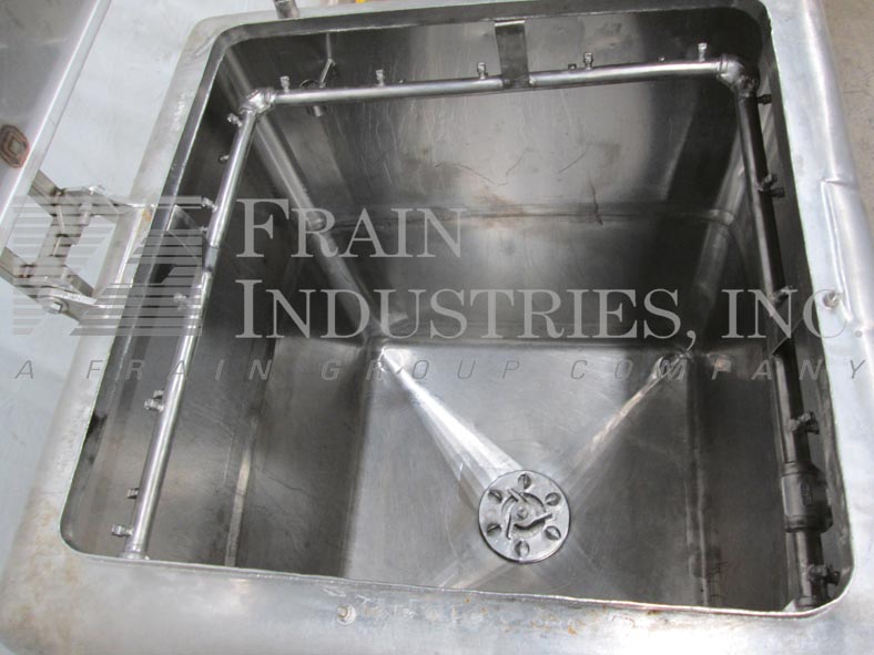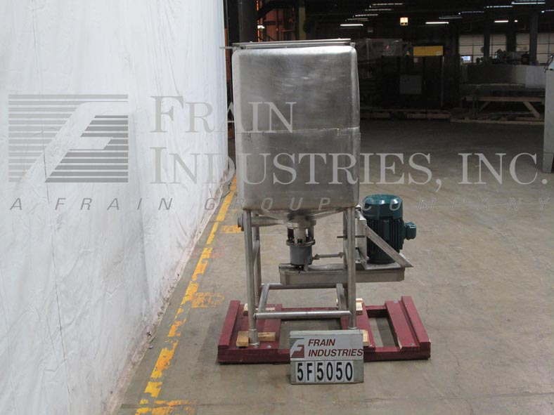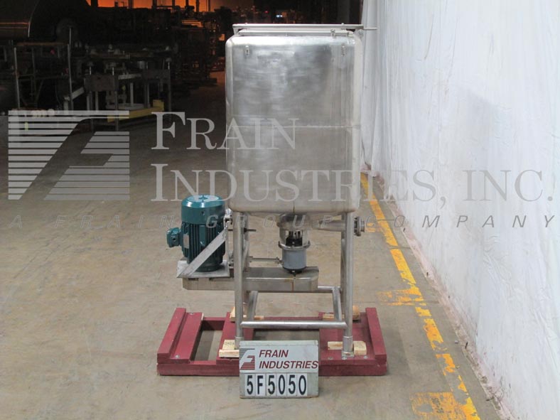 返回所有设备250加仑,304不锈钢液化器/搅拌机。腔室尺寸:34“长度; 34”宽;45“深度。配备铰链顶盖,内部喷涂系统。锥形底部有6个孔/ 3翼叶轮,5-3 / 4”OD 3“ID法兰底底放电,在34”落地间隙。15 HP侧底安装电机驱动。安装在四条腿不锈钢管状底座上。