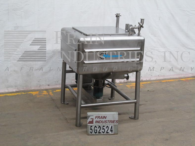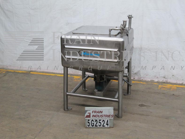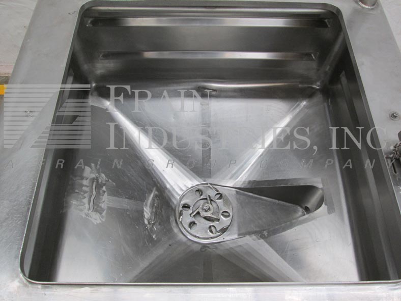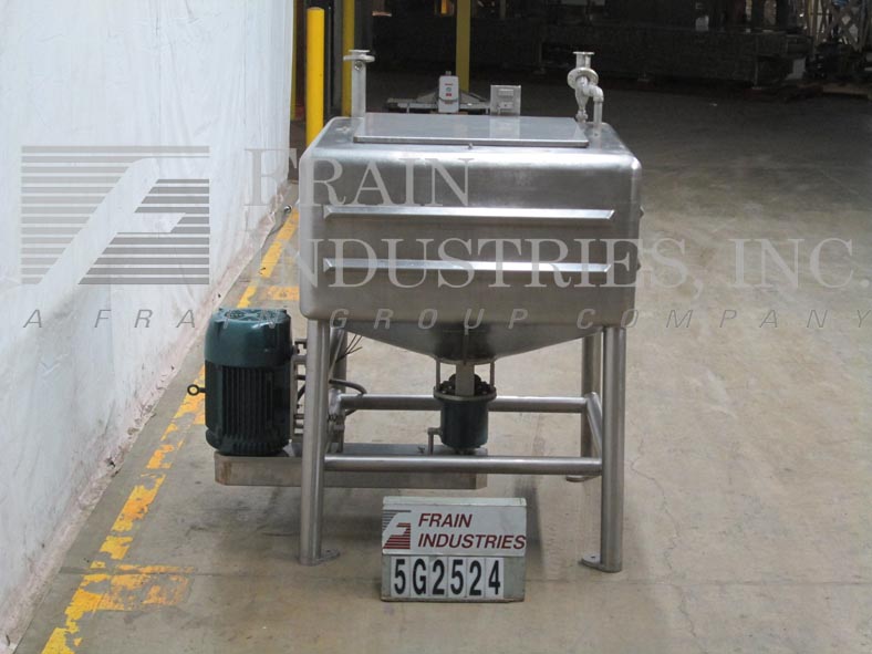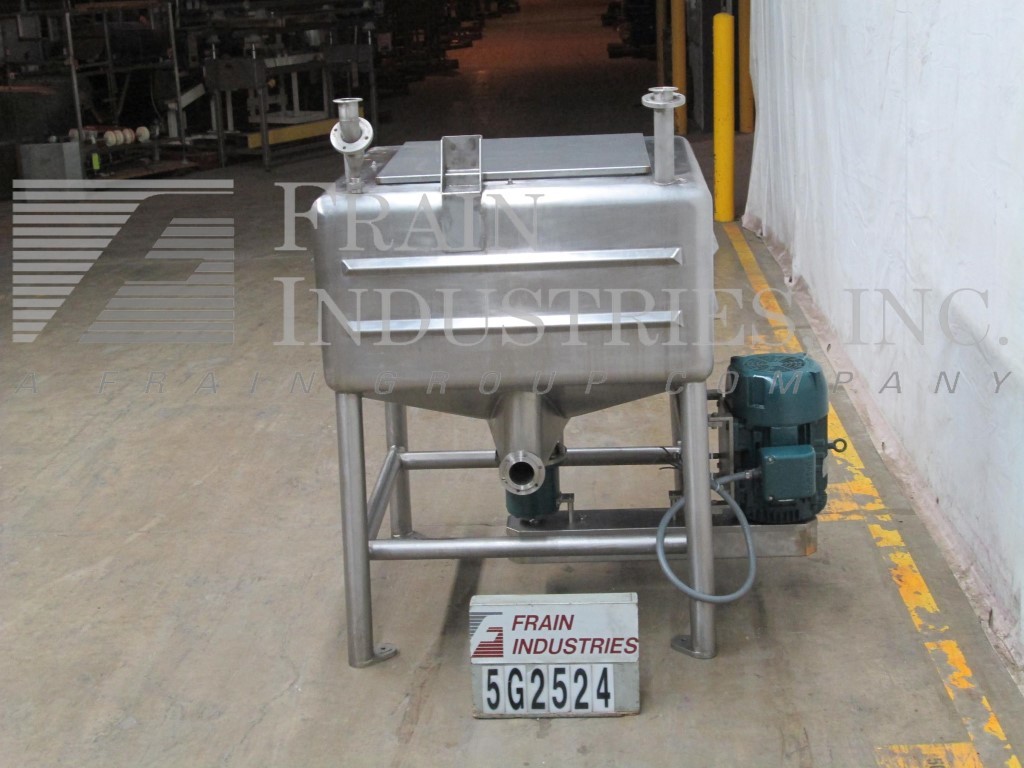返回所有设备诺曼250加仑,不锈钢,高剪切,单墙,矩形液化米。腔室调光:48“长度;宽度为48”;24“直墙; 22”倾斜锥底,具有36“总深度。配备32”X 34“ID顶级通量和(1)2-1 / 2”ID卫生,(2)1-1 / 2“ID顶部港口。锥底,6孔/ 3翼高剪切叶轮和2-1 / 2“OD卫生侧底底排放口,带24”地板清洁,25 HP侧面安装带动电机驱动器,安装在(4)腿不锈钢管上基本框架。
