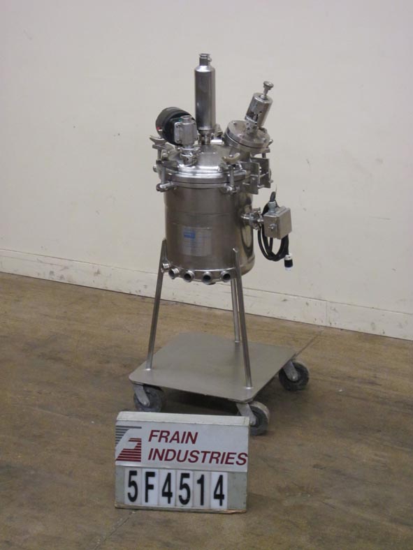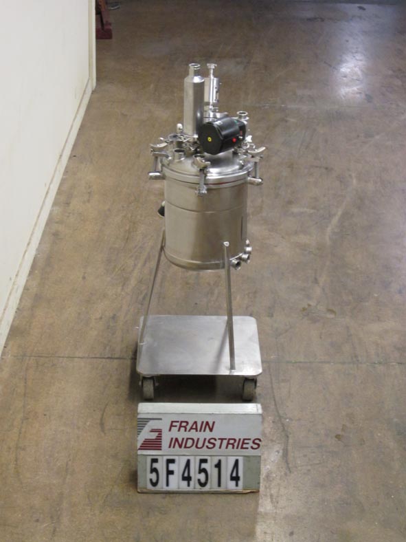 返回所有设备Nova,10加仑,316不锈钢单壁,内部压力额定混合容器。16“ ID X 18”直墙,平坦的顶部,翻转,向下螺栓盖板和顶部安装的道具式搅拌机(需求驱动器)。(1)3-1/2“ OD卫生顶端,带有视力玻璃,(3)2-1/2”的卫生顶端端口,带有活塞ACCTUATORATORATOTARE阀和(1)2英寸OD卫生端口,带过滤器。内部压力等级:15psi @ 250摄氏度F和mdmtof 30psi @ -20 def F.(2)2-1/2“ od and(5)2” od侧卫生端口。菜肴底部,2英寸OD卫生中心底部排放17“(3)不锈钢腿安装在不锈钢24“ x 24”底座上的“地板间隙。