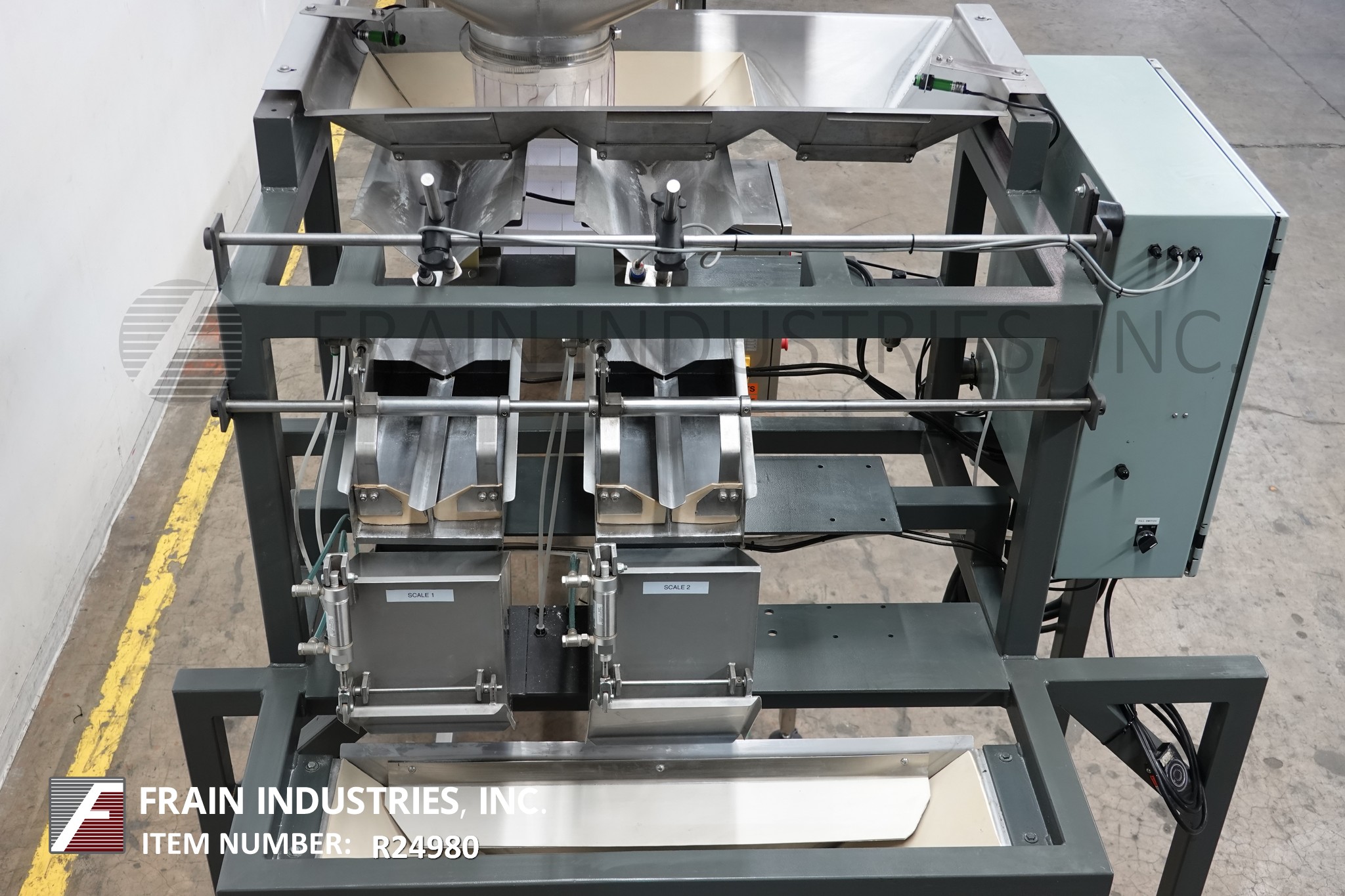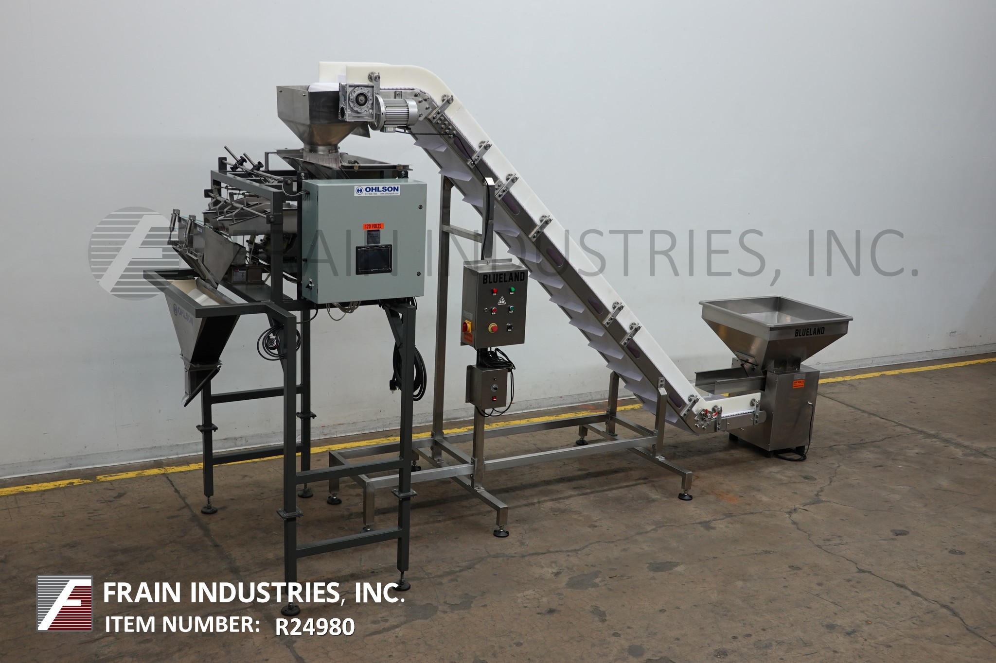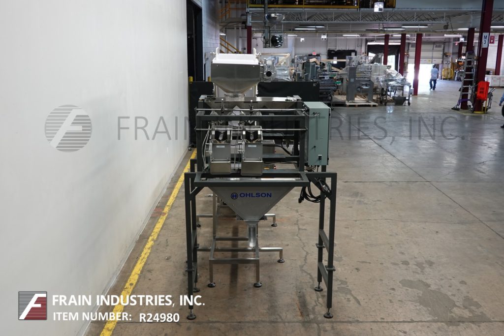 返回所有设备OHLSON型号2M2,自动双车道称重系统每分钟5至30次 - 取决于材料和应用。重量范围:1盎司至5磅,精度为+ / - 0.5至1.0克。配备18英寸的倾斜输送机,称重料斗和供应料斗,控制面板,有一个PLC,带有100个节目存储标准,7个彩色触摸板控制器,带有操作员界面,FMC Syntron带MAC阀门和安装在(4)腿基地上框架。适用于零食食品,糖果,五金,塑料件等免费流动物品。