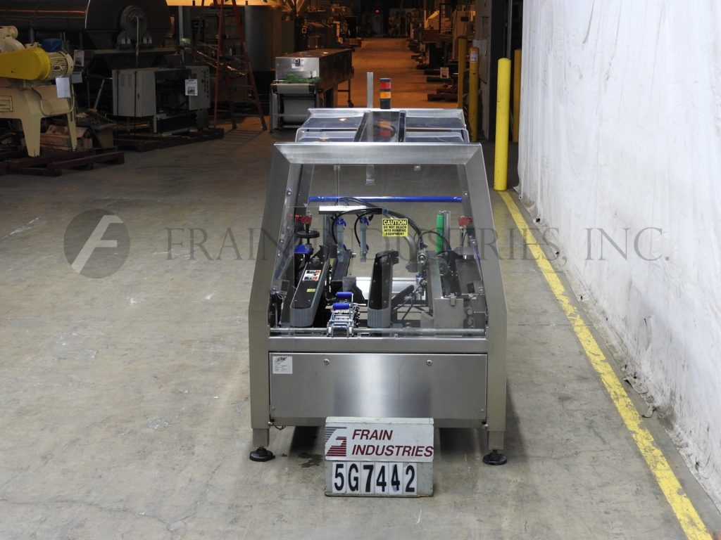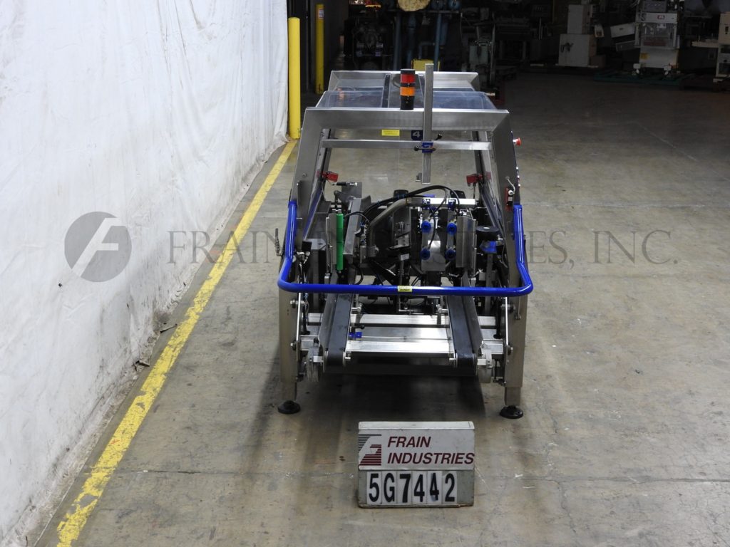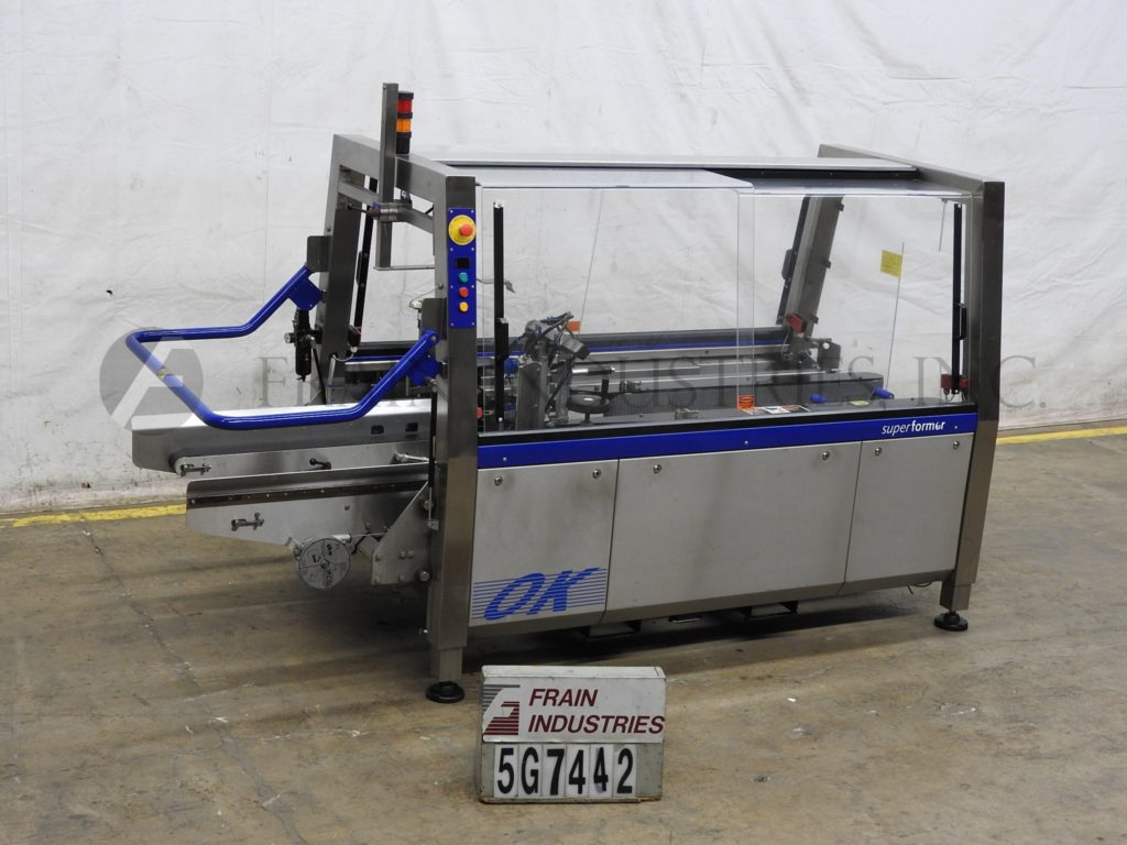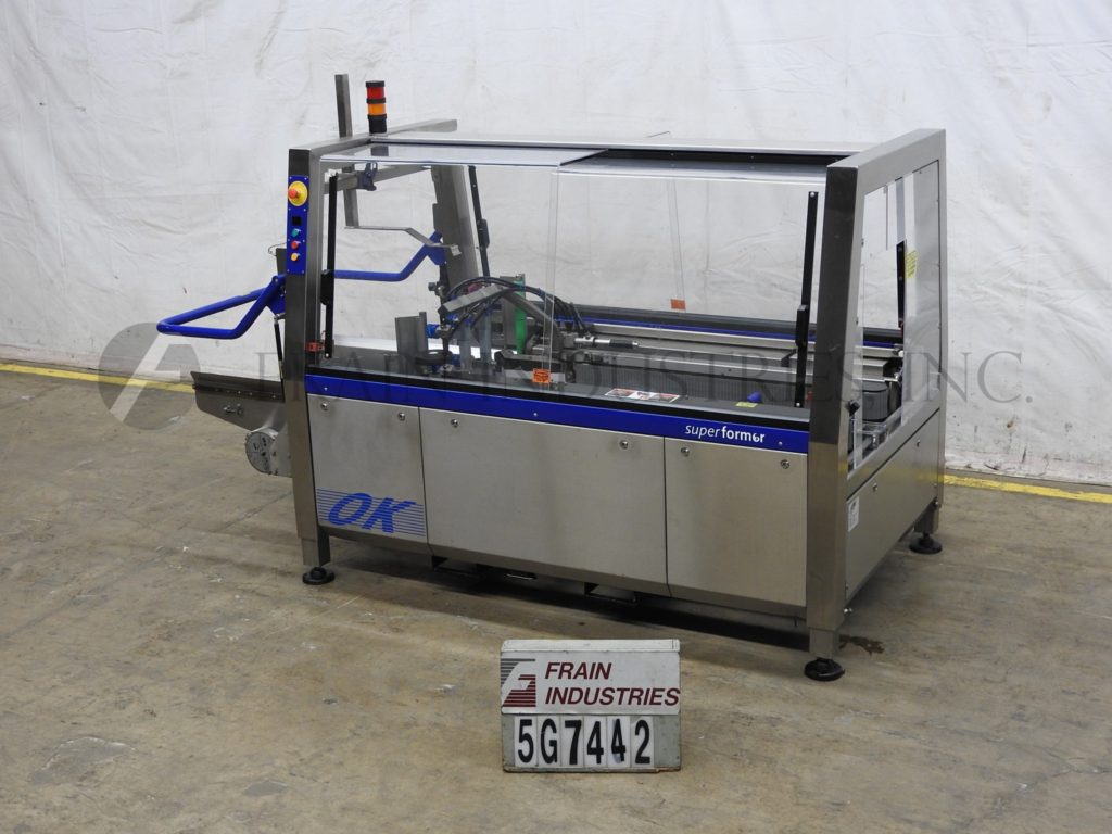 返回所有设备OK国际,Superformer 1M型,自动装盒机,底锥。每分钟3 - 16个病例-取决于材料和应用。Case size range: 8" to 18" in Length;宽度6"至14";3英寸到16英寸的高度。配备自动双皮带,空白盒杂志,往复真空picn -n-place和方系统,前和后皮瓣关闭,2“底胶带头14”最大辊直径,容易的大小变化和手曲柄可调。控制面板采用PLC控制器,具有启动、停止和e-stop按钮控制,联锁安全防护和状态灯条。安装在可调节高度的底座上。