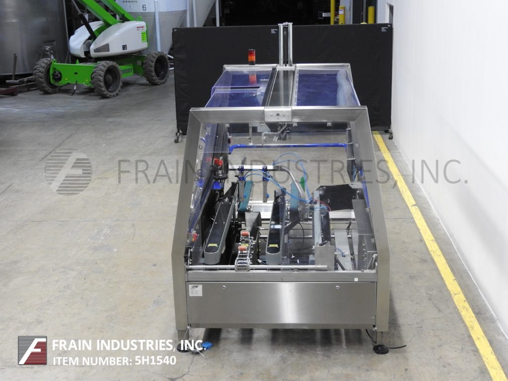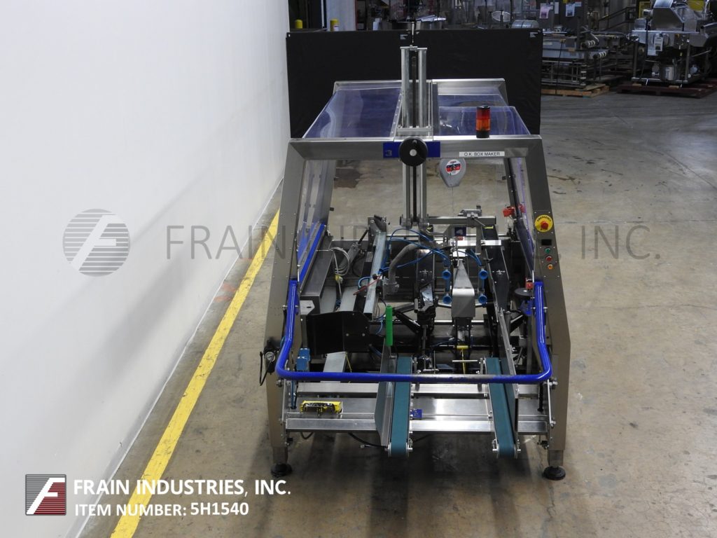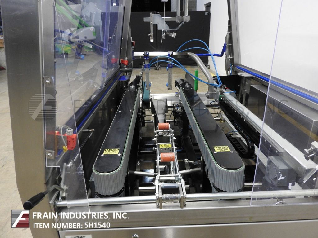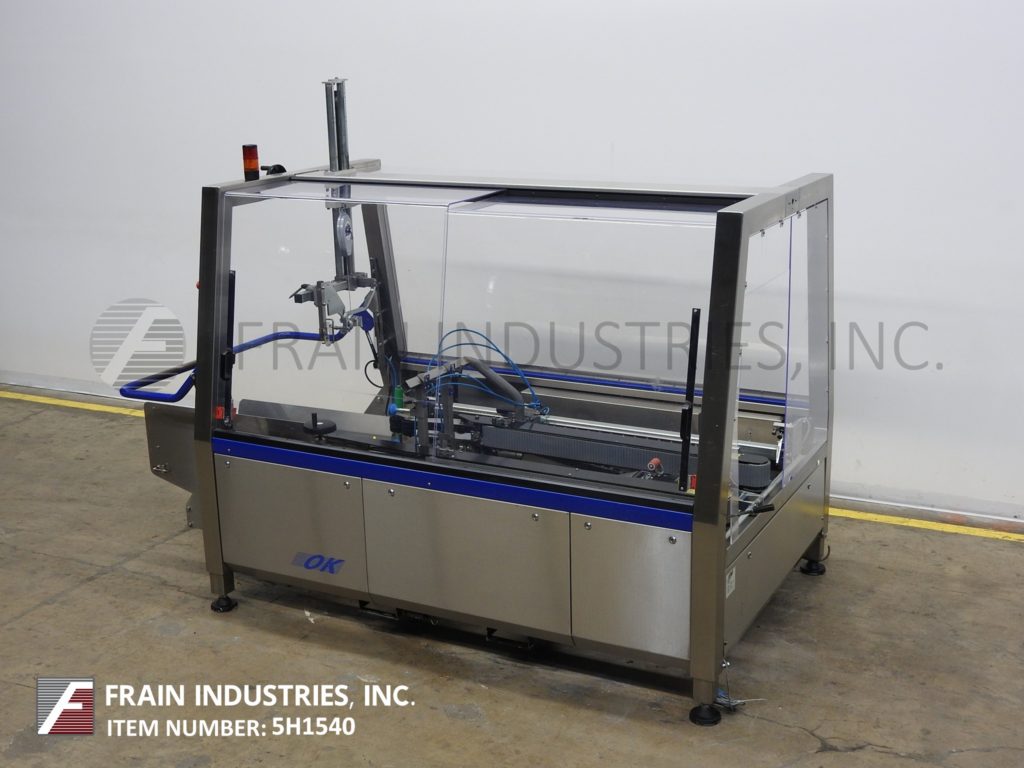 返回所有设备OK国际,SF1型超级变压器,自动装箱机,底锥。根据材料、应用和机器配置的不同,每分钟额定1至11个案例。外壳尺寸范围:8"至24"长度;宽度为8"至20";6英寸到24英寸的高度。配备40"长,双皮带空白盒杂志往复真空picn -place和方正系统,前和后襟翼关闭器,52"长的侧夹持皮带转移输送机,2"底胶带头14"最大辊外径和手曲柄可调,方便大小的变化与联锁安全保护,状态灯条和按钮启动/停止控制。安装在不锈钢底座框架与水平腿。