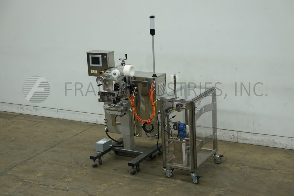 Back to All Equipmentω设计, Model PDF, Stainless steel, pouch desiccant feeder capable of single or double drops at speeds from 80 to 120 poches per minute on single drop – depending on materials and application. Equipped with container and desiccant verification eyes, dual pouch reel and adjustable drop height. Control panel with Panelview HMI Screen with e-stop down push button controls and statis light bar. Mounted on stainless steel base with height adjustable legs.