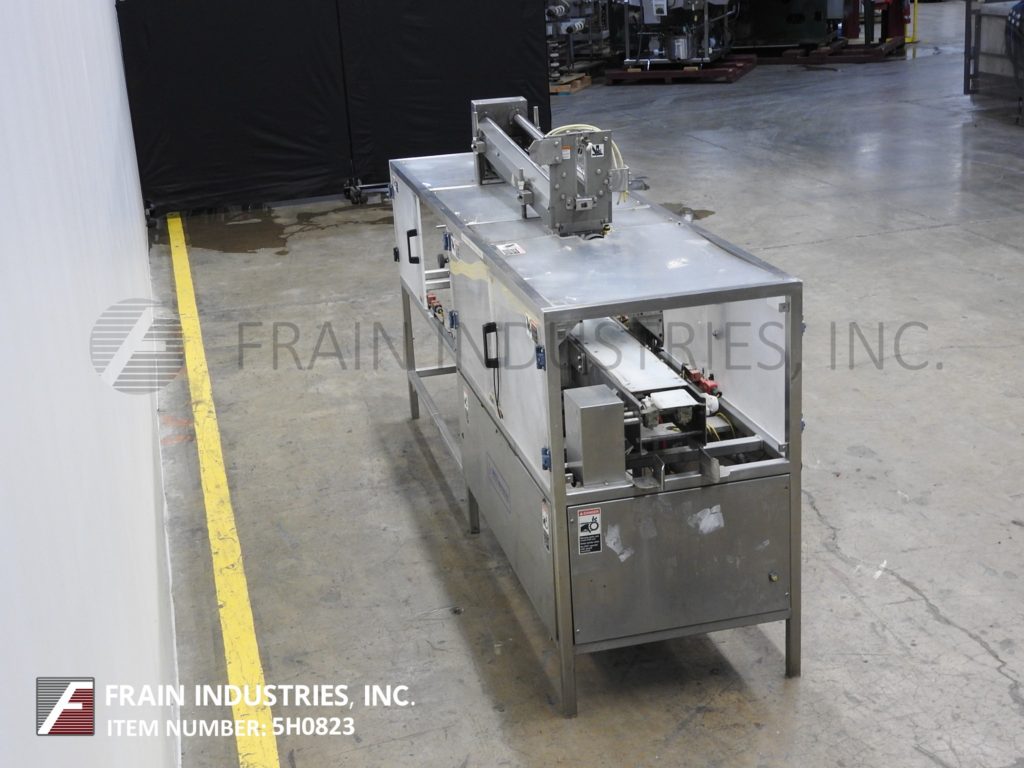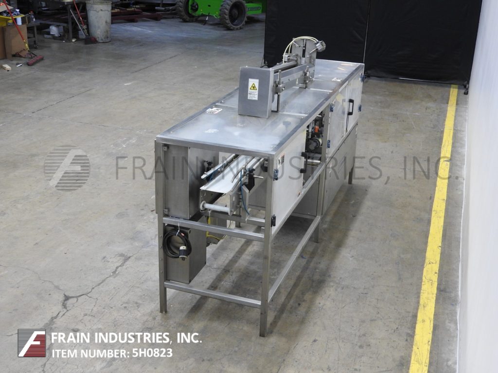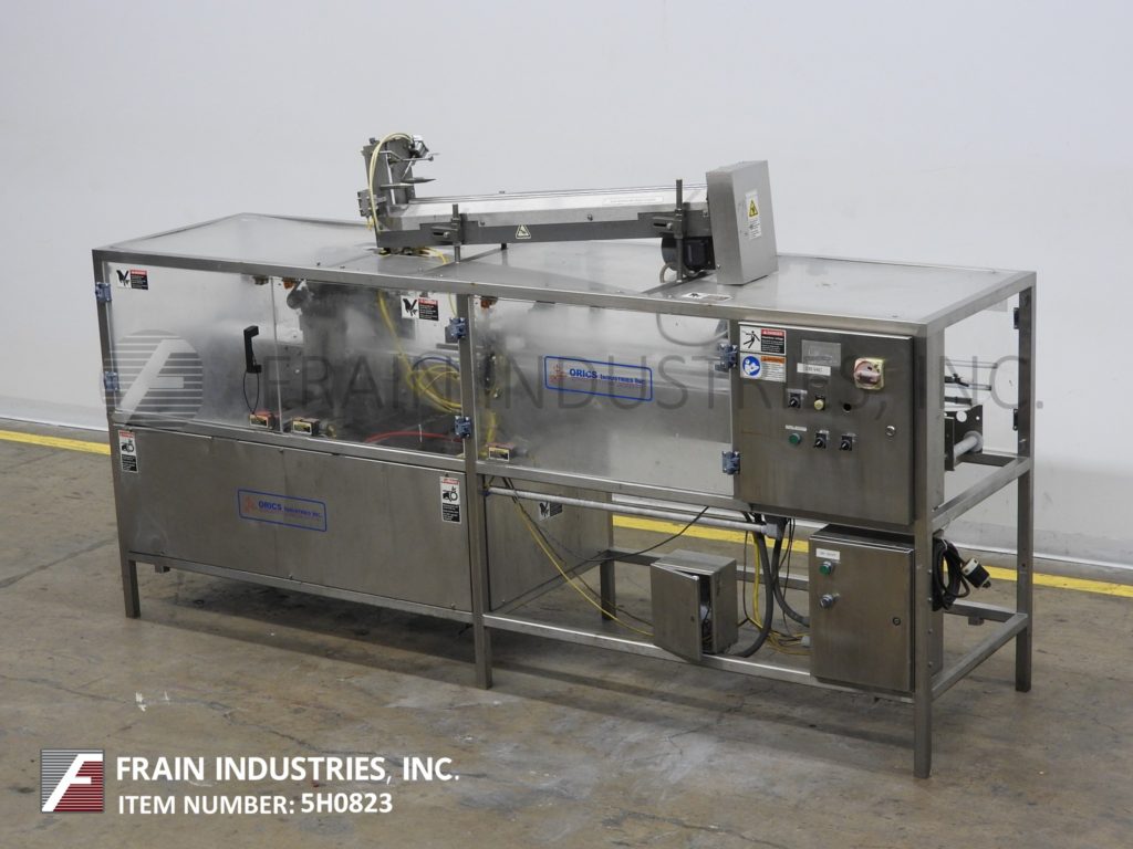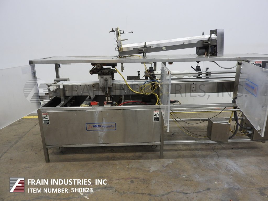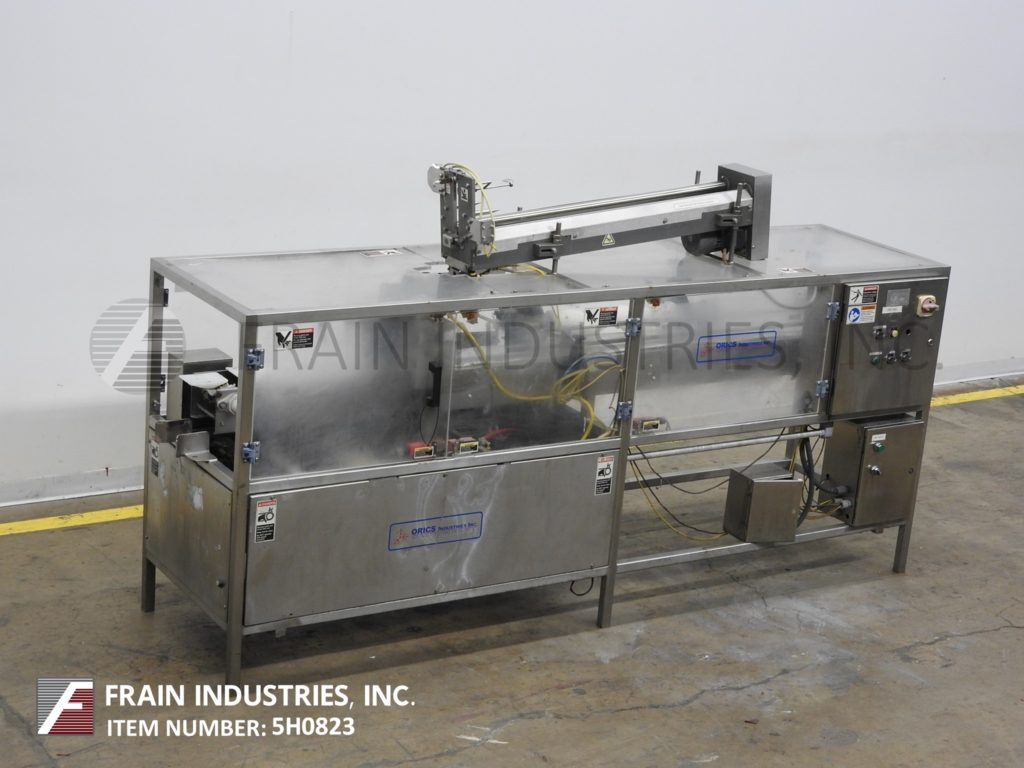 返回所有设备Orics, ACP-150型,自动,不锈钢,内联覆盖。额定每分钟20到150个盖子-取决于材料,应用和机器配置。配备一个120"长x 7"宽塑料德林输送机可调节导轨,24"长的蜗杆进给,46"长的动力旋转辊盖杂志和11"长的压缩带。控制面板采用GE发那科控制器,按钮启动/停止控制和开/关开关。