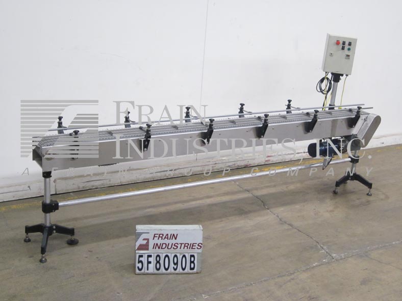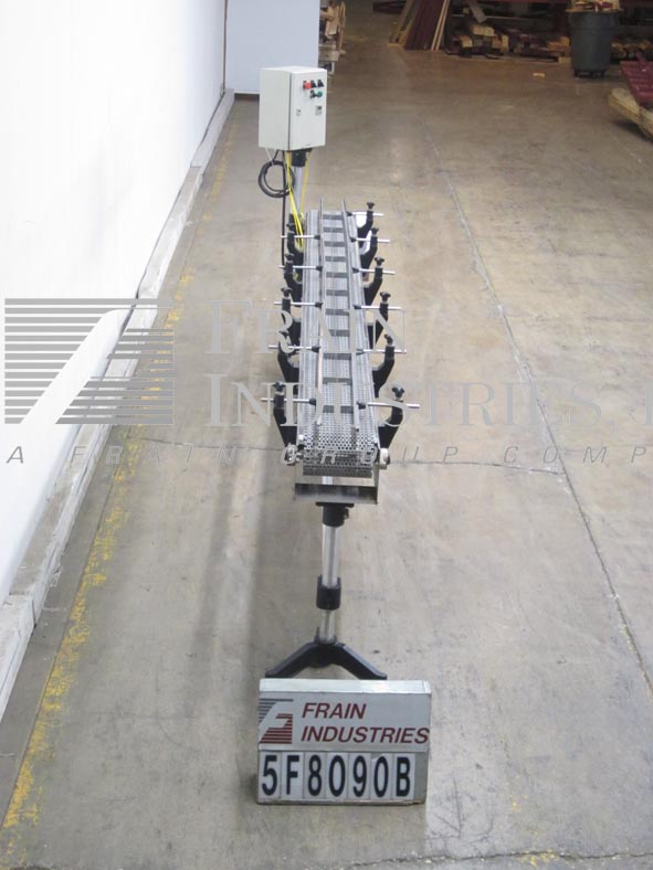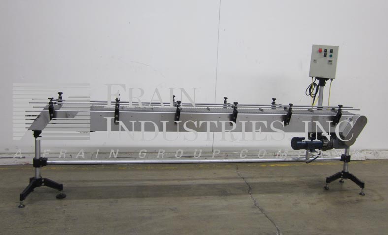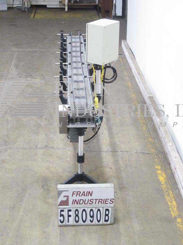 Orics SLC-IDX-1200 intermittent motion conveyor, 12′ Long x 10" Wide, with integrated controls for Orics operated fill system.