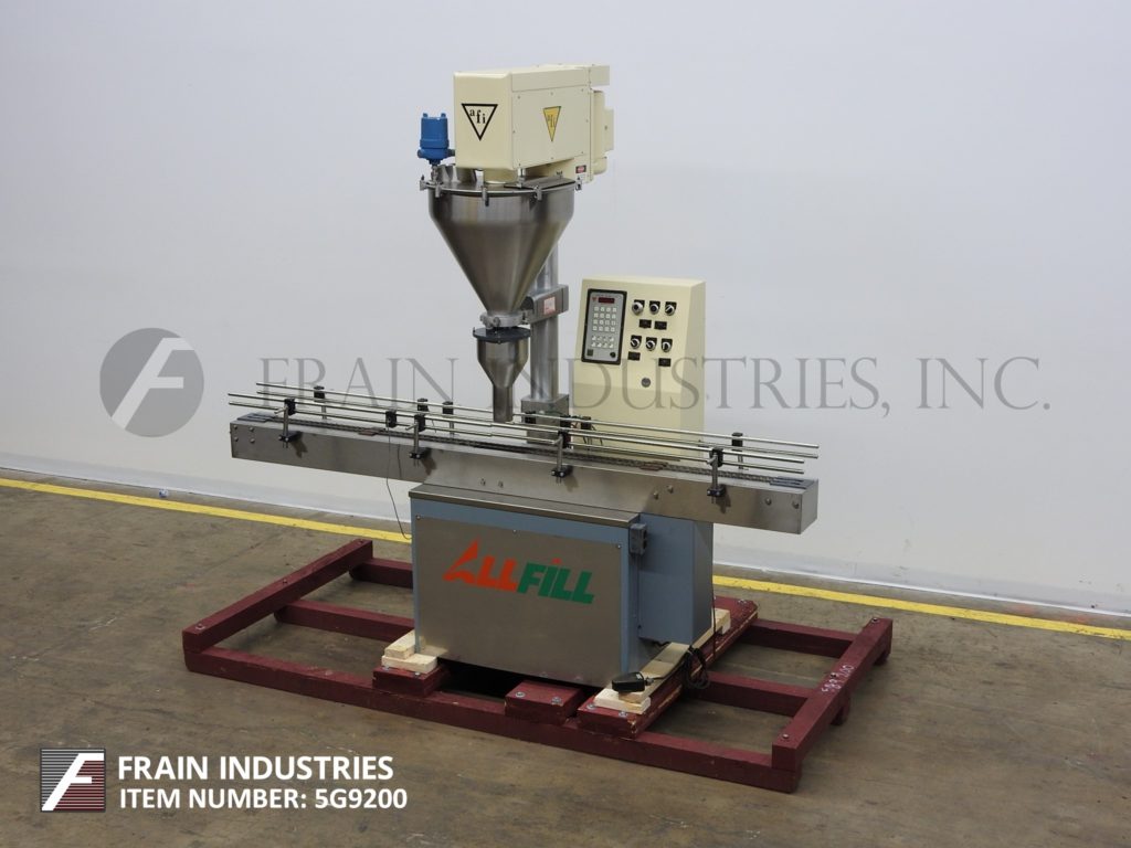 返回所有设备全灌装,SHO型,单头,螺旋填料与集装箱输送机。每分钟的容器数量-取决于材料,应用和机器配置。配备20"直径x 22"深,2英尺³不锈钢,无缝,产品料斗与螺栓下防尘罩,6"外径产品在饲料溜槽,液位传感器,潜水喷嘴,1½马力螺旋钻和½马力搅拌器电机驱动器。92"长x 2"宽(2)链输送机与Bimba分度。控制面板与数字读出触摸板控制,推动停止/启动,手动指数按钮,脚踏板/自动切换,输送机开/关,喷嘴降低开/关,振动/续。/填满,振动器快速拨号,输送机快速拨号,填补拨号后延迟。安装在重型基础框架。