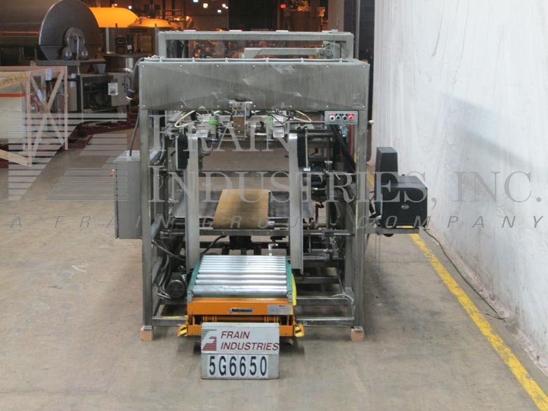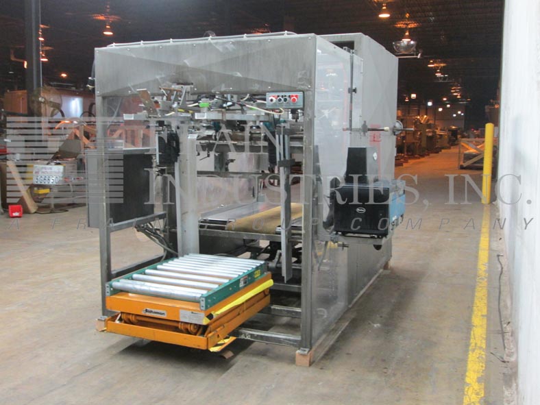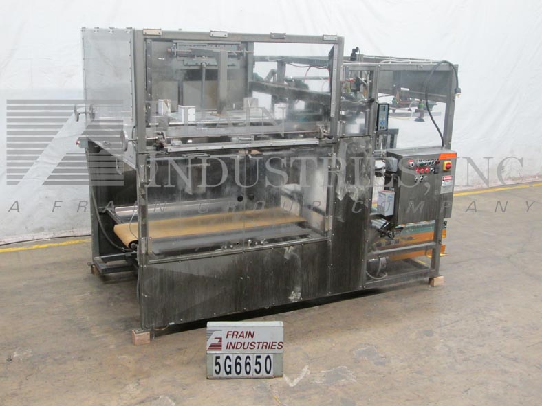 返回所有设备挂锁器,型号TF.6.TSF.E,自动托盘前。每分钟5到20托盘 - 取决于材料和应用。纸盘尺寸范围:16“至48”的长度;16“至40”的宽度,最大深度为15英寸(最大空白尺寸为48英寸宽和56英寸长)。配备了2000磅的容量41“长x 27”宽滚筒输送机剪刀盒,真空空白进料器,可调节的成型犁(RAM板是一个变化部件,以容纳纸盘尺寸),Nordson热熔胶系统具有图案控制和19“宽x 64”长放电带式输送机。包括按钮开始/停止控制升降机和循环。用于空白进料(手动/关闭/自动)和胶水图案的控制拨盘(1/2 / 3/4)。