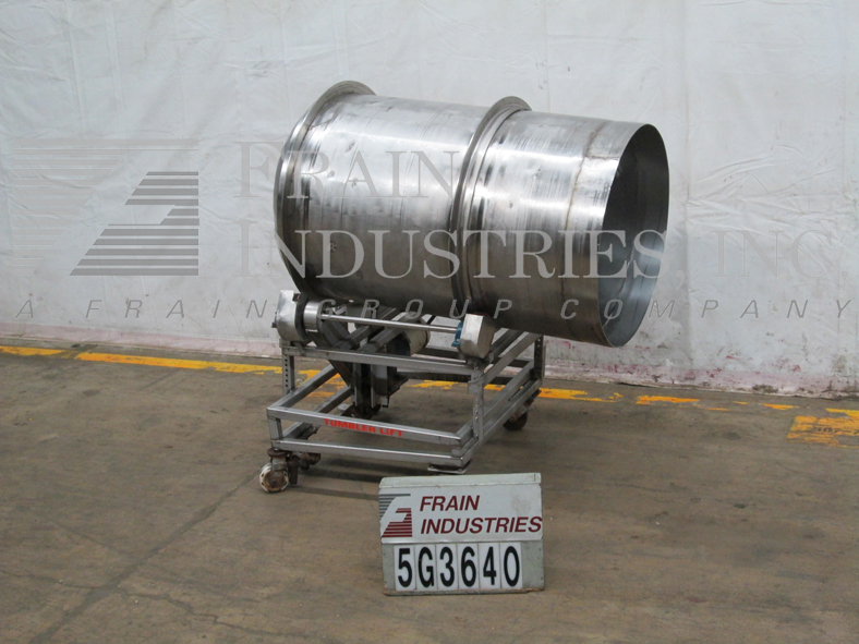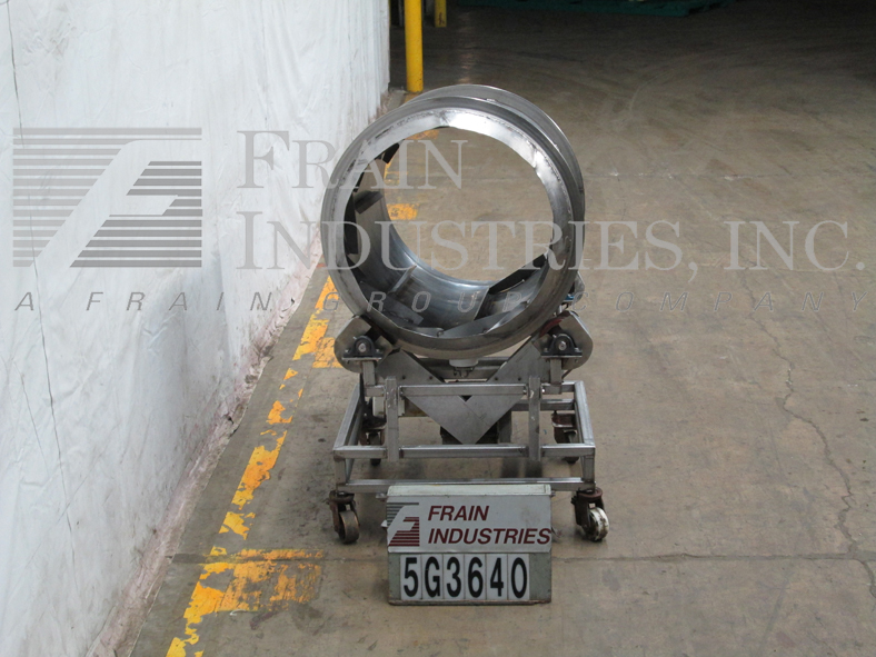 不锈钢便携式浮管,32英寸直径x 52“长。配备28个“直径饲料开口,24”长的1-3 / 4“高航班。安装在倾斜的不锈钢摇篮,6”直径耳轴轮。22“放电地间隙,28英寸充电地间隙。