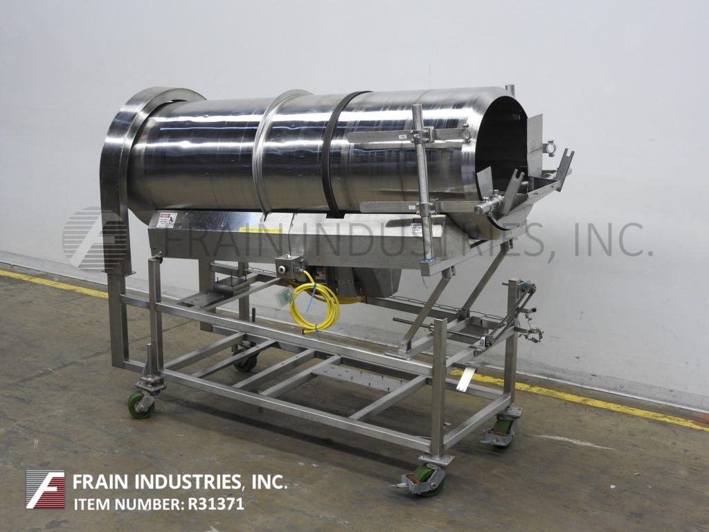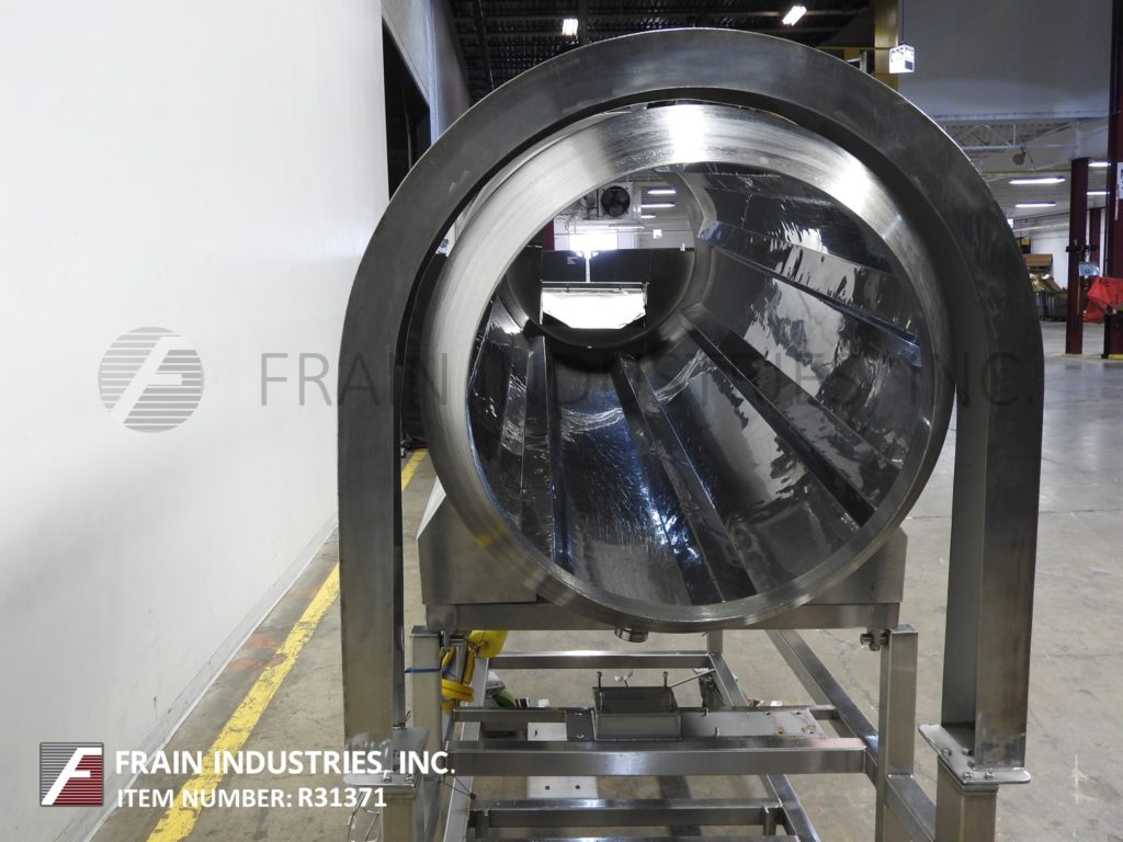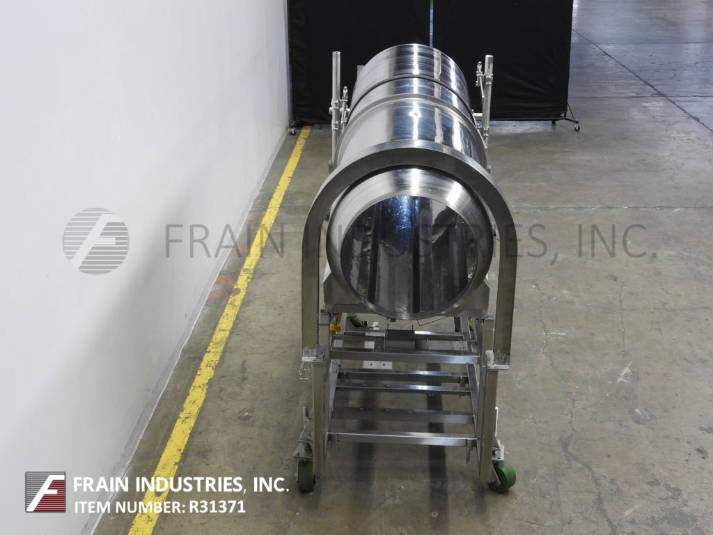 返回所有设备28英寸直径,不锈钢,连续运动,旋转带肋涂层滚筒每小时的产品磅-取决于材料,应用和机器配置。配备28”内径x 95”长的旋转涂层滚筒(8)1½”高固定内部肋骨,26”外径x 60”高进料,24”外径x 43”高放电。安装在不锈钢(4)腿架上。