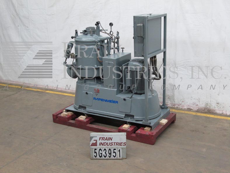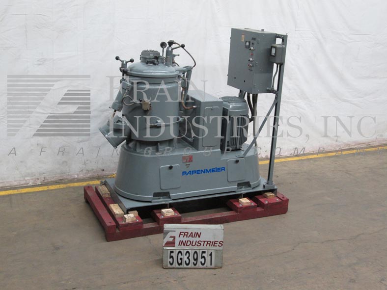 返回所有设备Gunther Papenmeier,TSHK,75升高强度低压夹套流化混合器。配有圆顶顶部Clamshell盖子,可调节角度顶部入口挡板,6“直径照明瞄准玻璃/充电端口和安全限位开关。20”直径x 21“深不锈钢内部,4-3 / 4”直径冲洗底部浮出口。18“直径3-刀片底部刮螺旋桨和18-1 / 2”直径3-刀片环保护上部螺旋桨。具有(2)尺寸3启动器,模拟电流表,温度指示器,低/高选择开关的控制面板。单位由25HP驱动器供电,并安装在70“长x 32”宽X 4-1 / 4“高温钢板上。