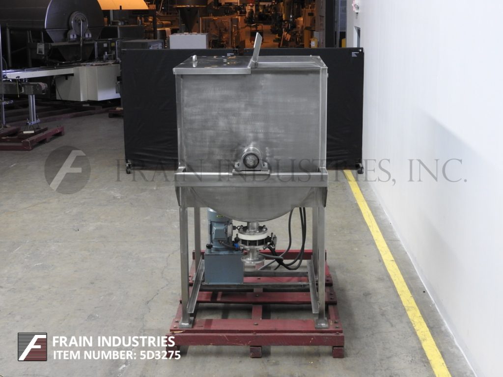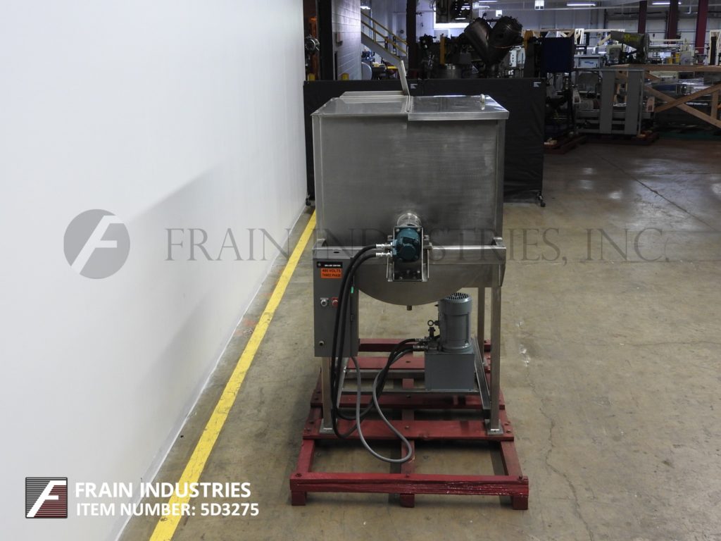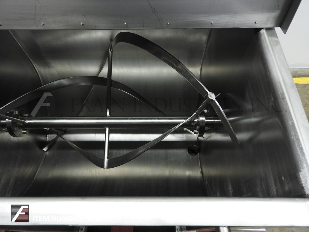 返回所有设备总共45立方英尺和35立方英尺的工作能力。316 S/S,外套,双色带搅拌机。配备:48"长x 39 1/2" "宽x 47 " D混合室,双混合带48"(1219mm)长x 2 3/4"(70mm)直径轴。缎带有(外缎带1/4“(6mm)厚度和2”(50mm)W)(内缎带1/4“(6mm)厚度和2”(50mm)W), 2 7/8“(72mm)底部卸料与蝴蝶关闭和25”(635mm)地面间隙。3/4“(20mm)底部排放(排水)34”(863mm)地面间隙。不锈钢接触部件。配备托莱多1000磅称重传感器。马克斯