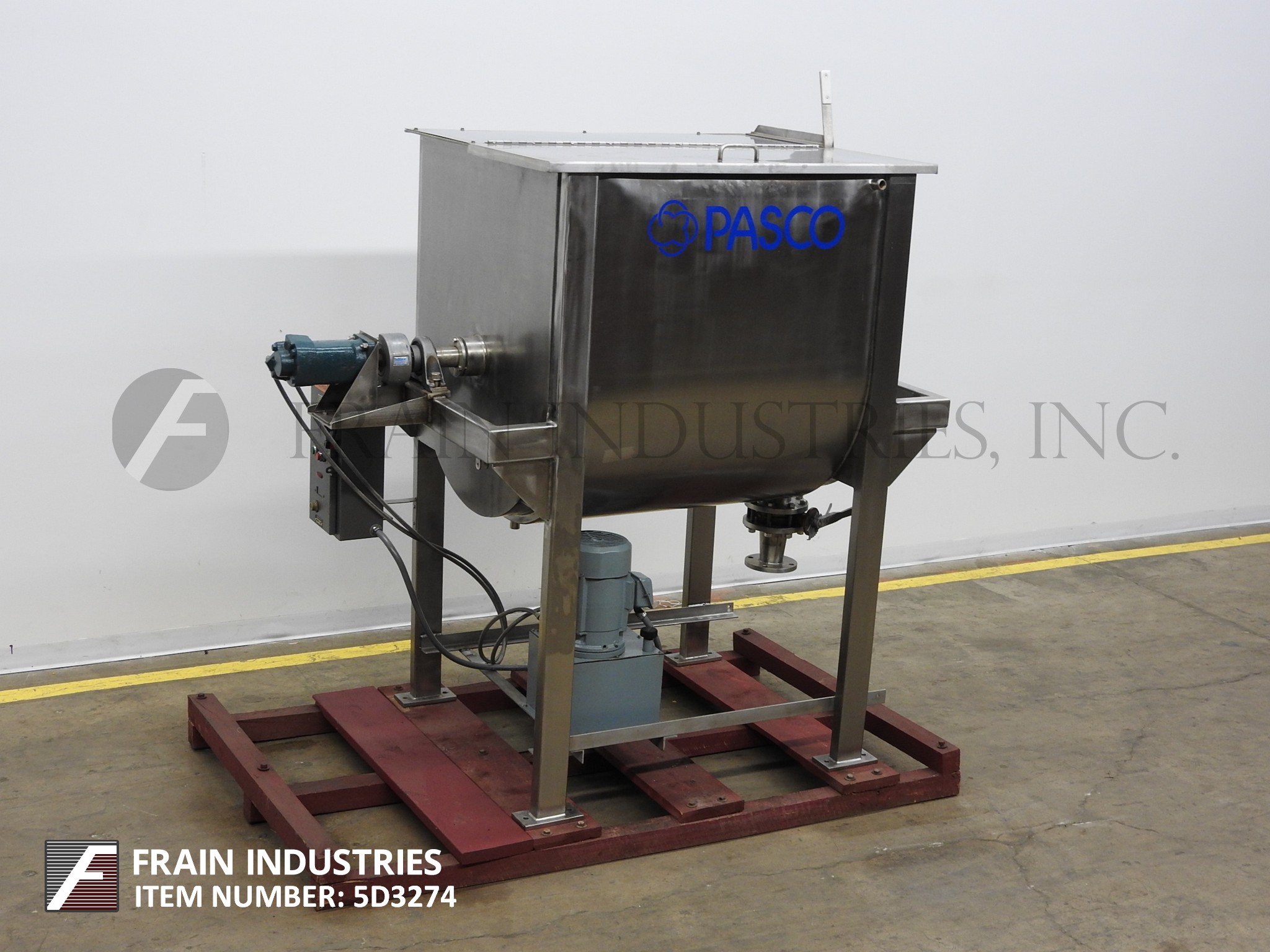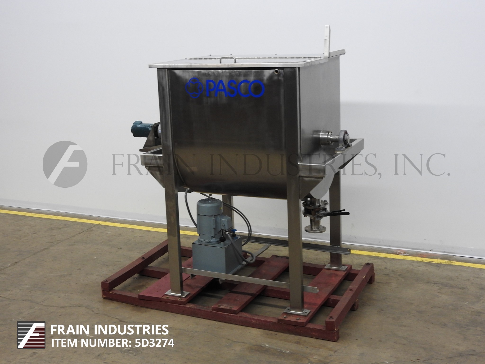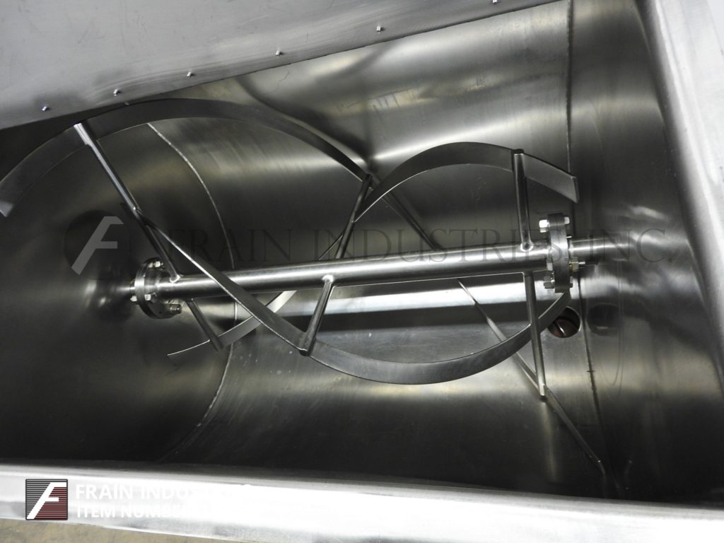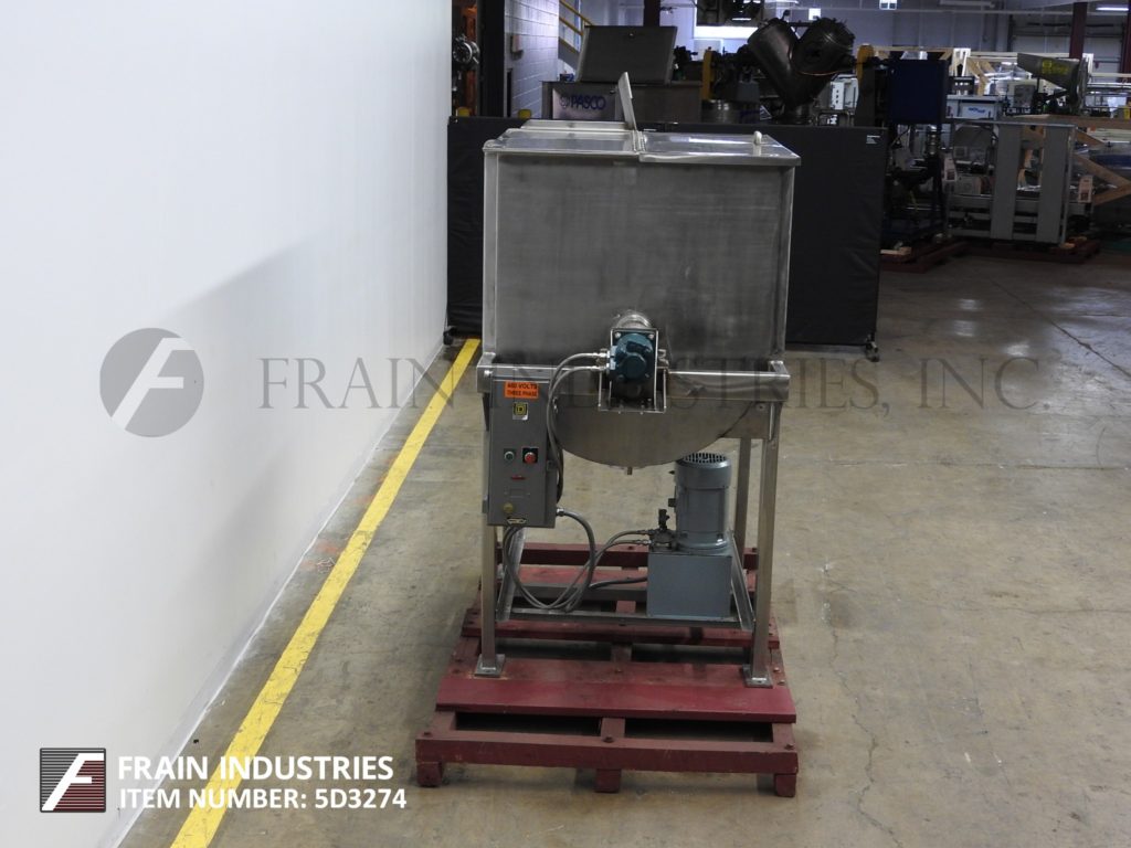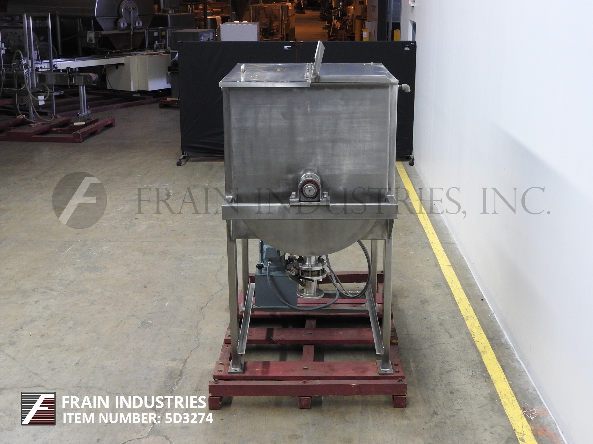 返回所有设备45立方英尺总计和35立方英尺的工作能力,316 S/S,双色带搅拌机。配备:48"长x 39 1/2" "宽x 47 " D腔,双色带上48"长x 3/4"直径轴。丝带有外丝带1/4"厚度和2" W内丝带1/4"厚度和2" W, 2 7/8"底部卸料与蝴蝶关闭和25 "地间隙。3/4"底部放电34"离地间隙。不锈钢接触部件。