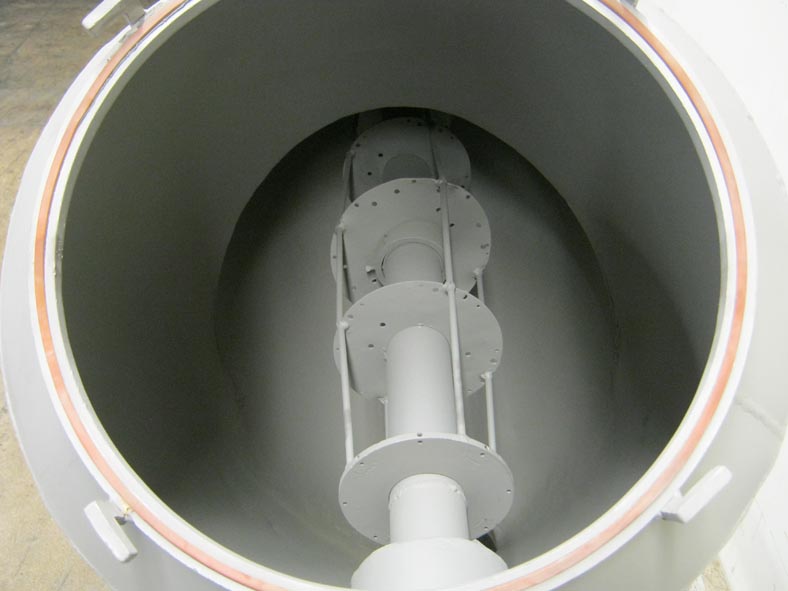 10英尺,304不锈钢,双壳搅拌器。产品密度:高达55磅/平方英尺。配有两个18“直径的入口,环氧涂覆的内部,混合棒和8”直径放电,具有蝶阀。安装在扩展的基座基座上。