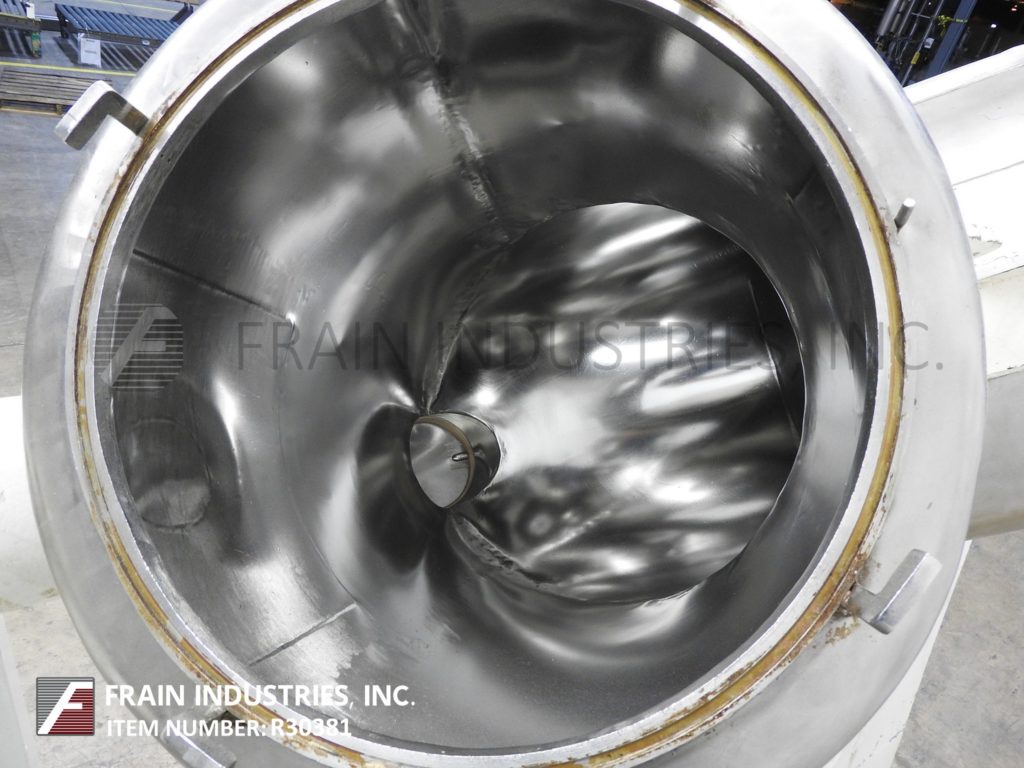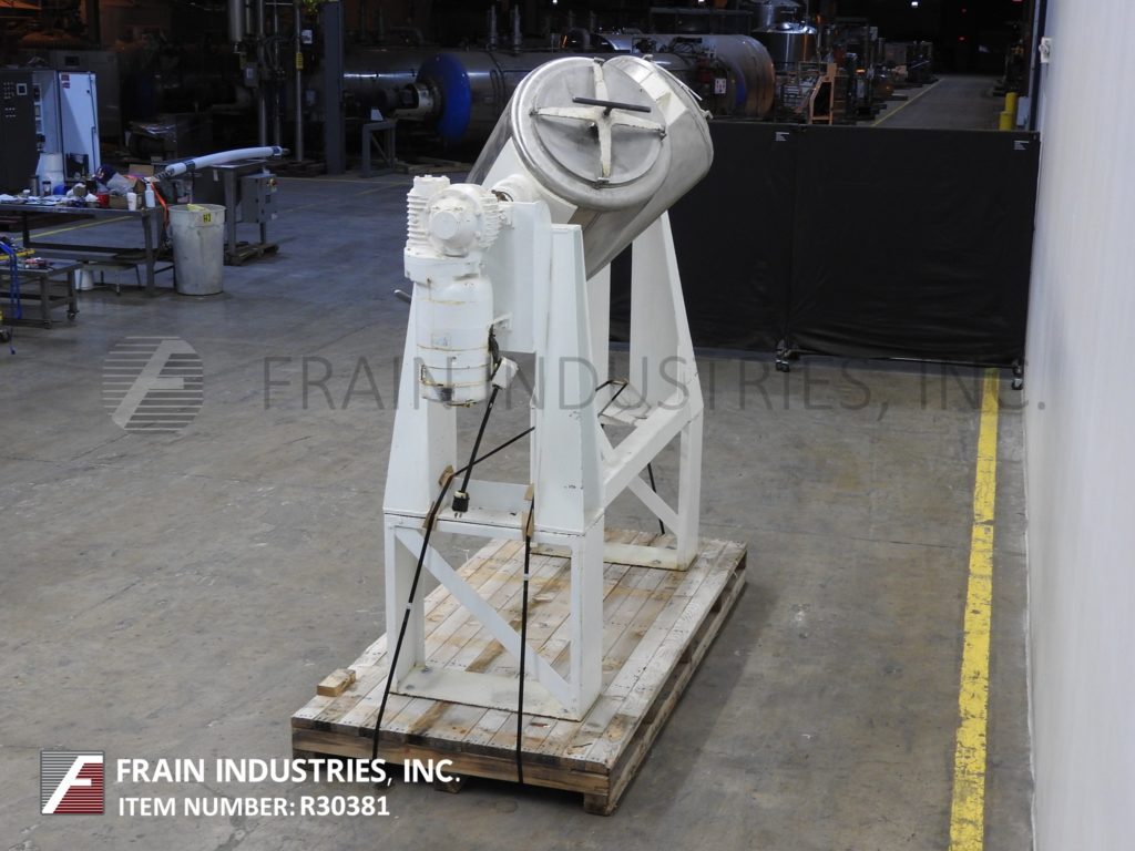 返回所有设备Patterson Kelly,10英尺³,316不锈钢,双壳搅拌机。额定重量为75磅/立方英尺,产品每小时的Ibs -取决于材料和应用。配备(2)18”ID产品端口与螺栓下盖,(2)43”长的侧v形墙和(2)15”长的内v形墙。8英寸内径黄油阀排放,38英寸地面间隙。外壳由3马力驱动。需要106"天花板间隙,34"摆动半径/ 68"摆动直径。