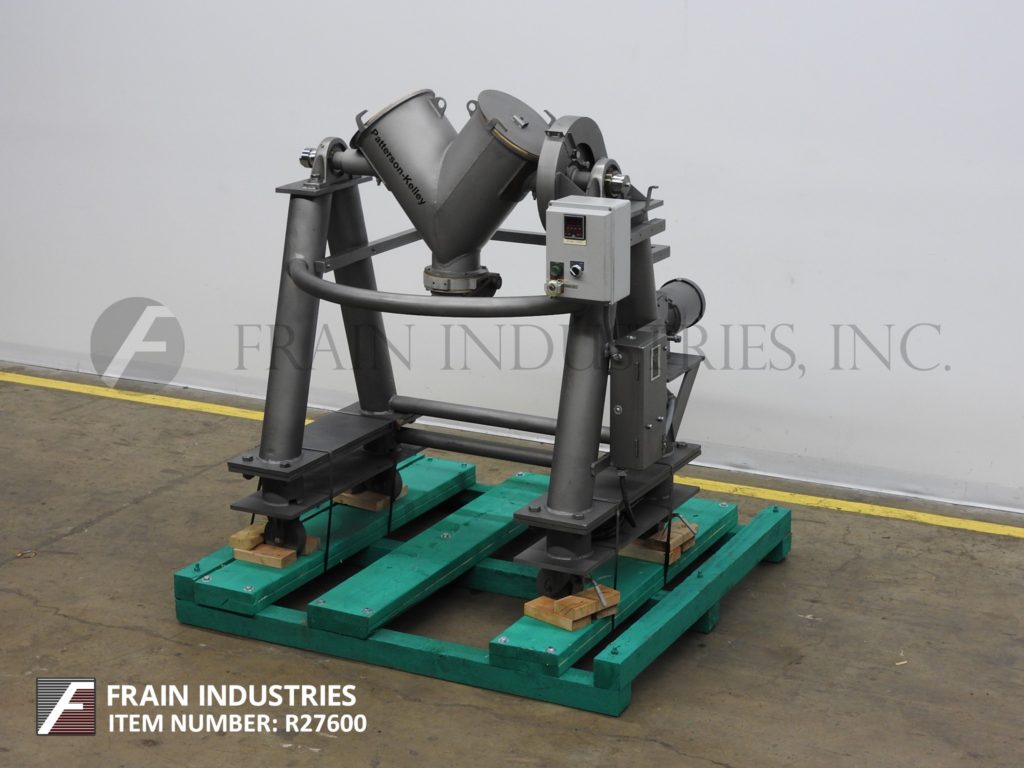 返回所有设备帕特森凯利,1立方英尺,316不锈钢,双壳混合器。额定每立方英尺和磅50磅每小时 - 根据材料和应用。配备有(2)11½" ID产物端口与螺栓下盖,(2)16" 长边V-墙壁和(2)7" 长的内V-墙。5¾‘ID巴特里阀放电与36’离地间隙和动力通过¾Hp的驱动器。需要72" 摆动半径/ 40" 回转直径与20" 天花板间隙。控制面板,具有起动/紧急终止按钮和数字混合计时器控制器。安装在具有脚轮不锈钢基架。
