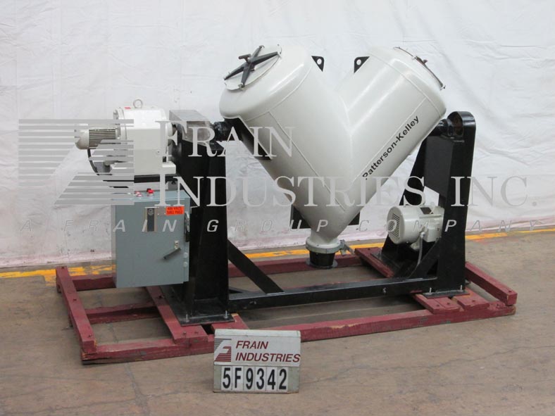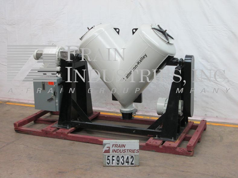返回所有设备Patterson Kelly, 20立方英尺工作能力,双壳,v型搅拌机。容器尺寸:直径30";52“倾斜部分。产品密度:60磅/立方英尺。配备两个17英寸直径的顶部进口端口,增强棒与7.5马力驱动,一个7英寸ID底部排放与蝶阀和5英寸的地面间隙。摆动直径:88",最大摆动高度:93"。