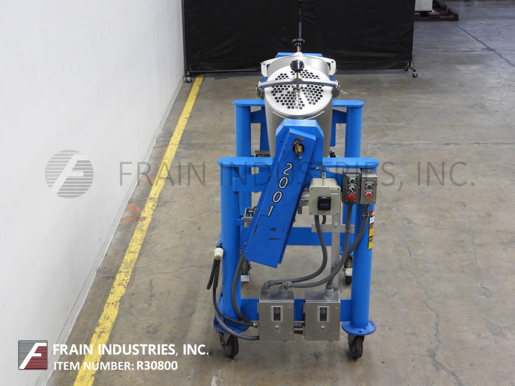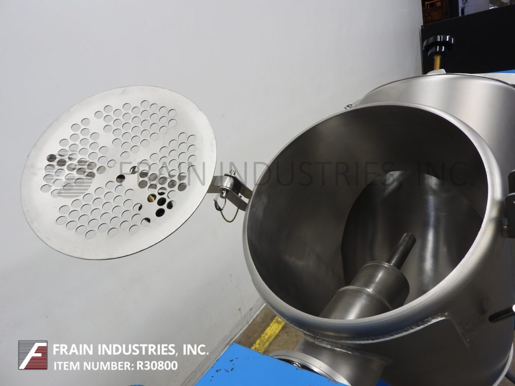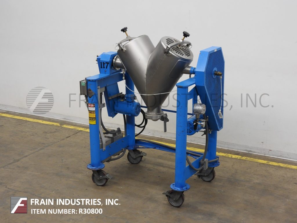 返回所有设备Patterson Kelly 3 Cu Ft,不锈钢双壳搅拌机,每小时额定为60磅,每小时磅产品 - 取决于材料和应用。配备(2)12“ID产品端口,螺栓向下盖,30英寸长边V墙和10”长内V墙,在22英寸中心,带有4“OD底部排放口,带有蝶阀和34”落地间隙。控制箱具有运行/慢跑开关,开始停止和e-stop按钮控件。安装在(4)腿涂上锁定脚轮的底座。