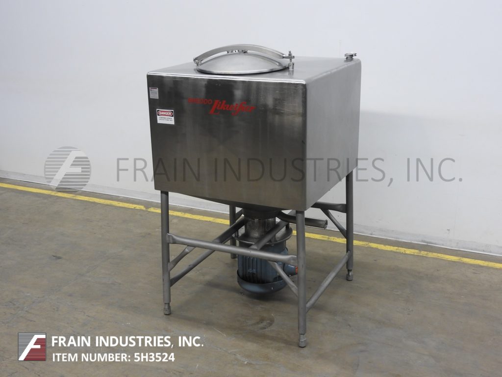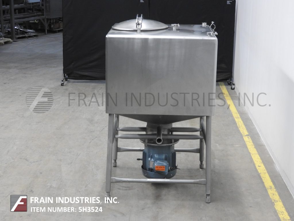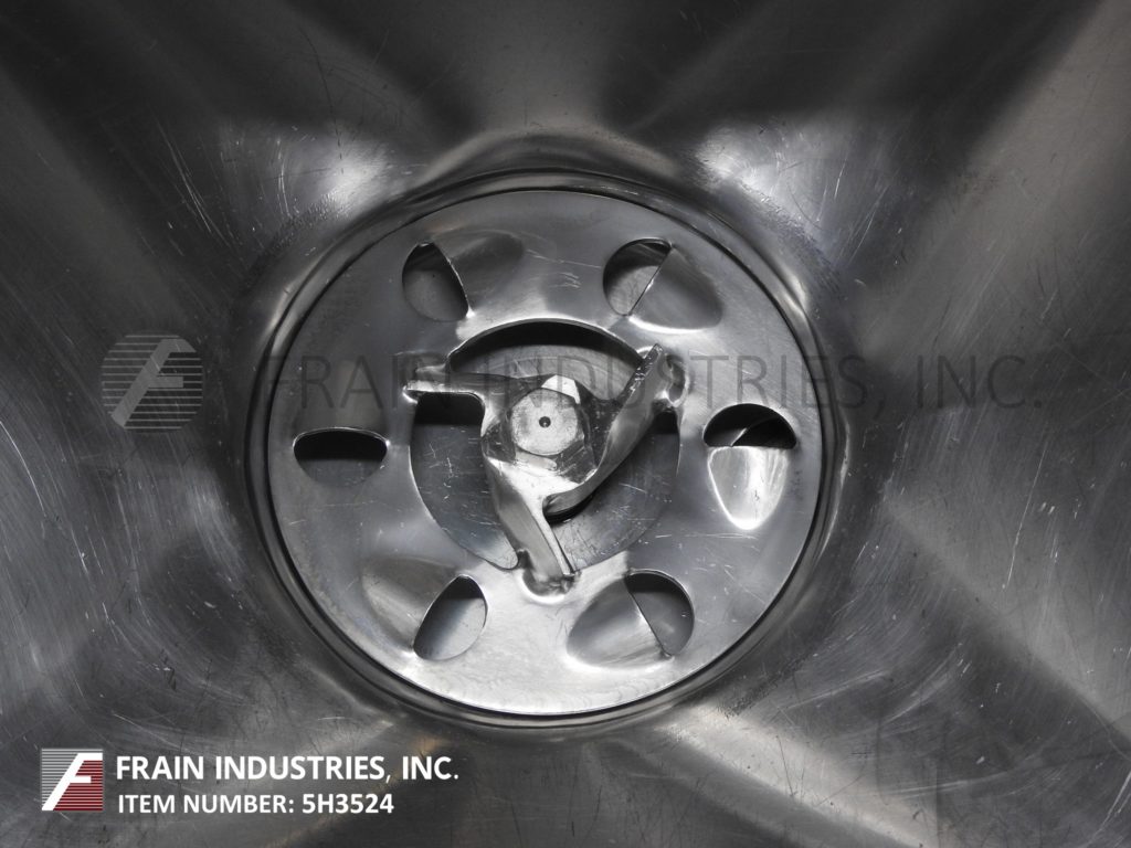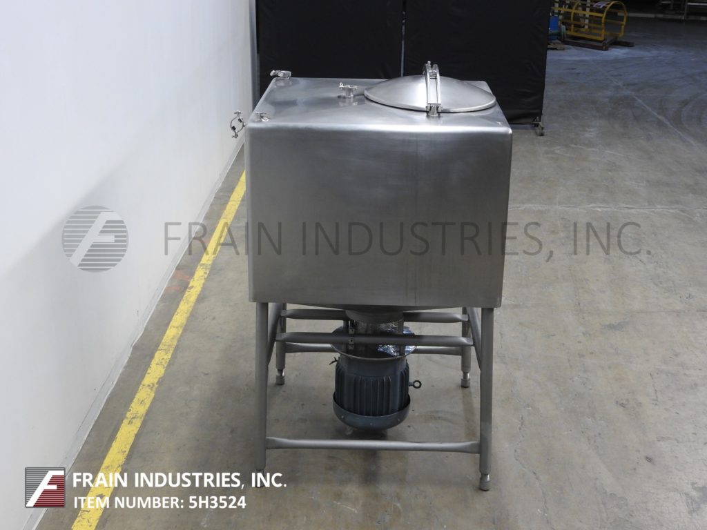 返回所有设备Breddo Model LDT,300加仑,不锈钢,高剪切,单壁液化师每小时数量 - 取决于材料和应用。方腔尺寸为:48“长x 48”宽x 34“直壁x 24”锥底。平顶有24英寸的OD顶级人工,配有翻转粗体盖板和(2)2-1 / 2“OD卫生顶级港口。内部底部6孔/ 3机翼叶轮,带37.5 HP直接安装电机驱动。锥形底部有3“OD卫生侧底部放电,28”接地清除。安装在(4)腿不锈钢框架上。